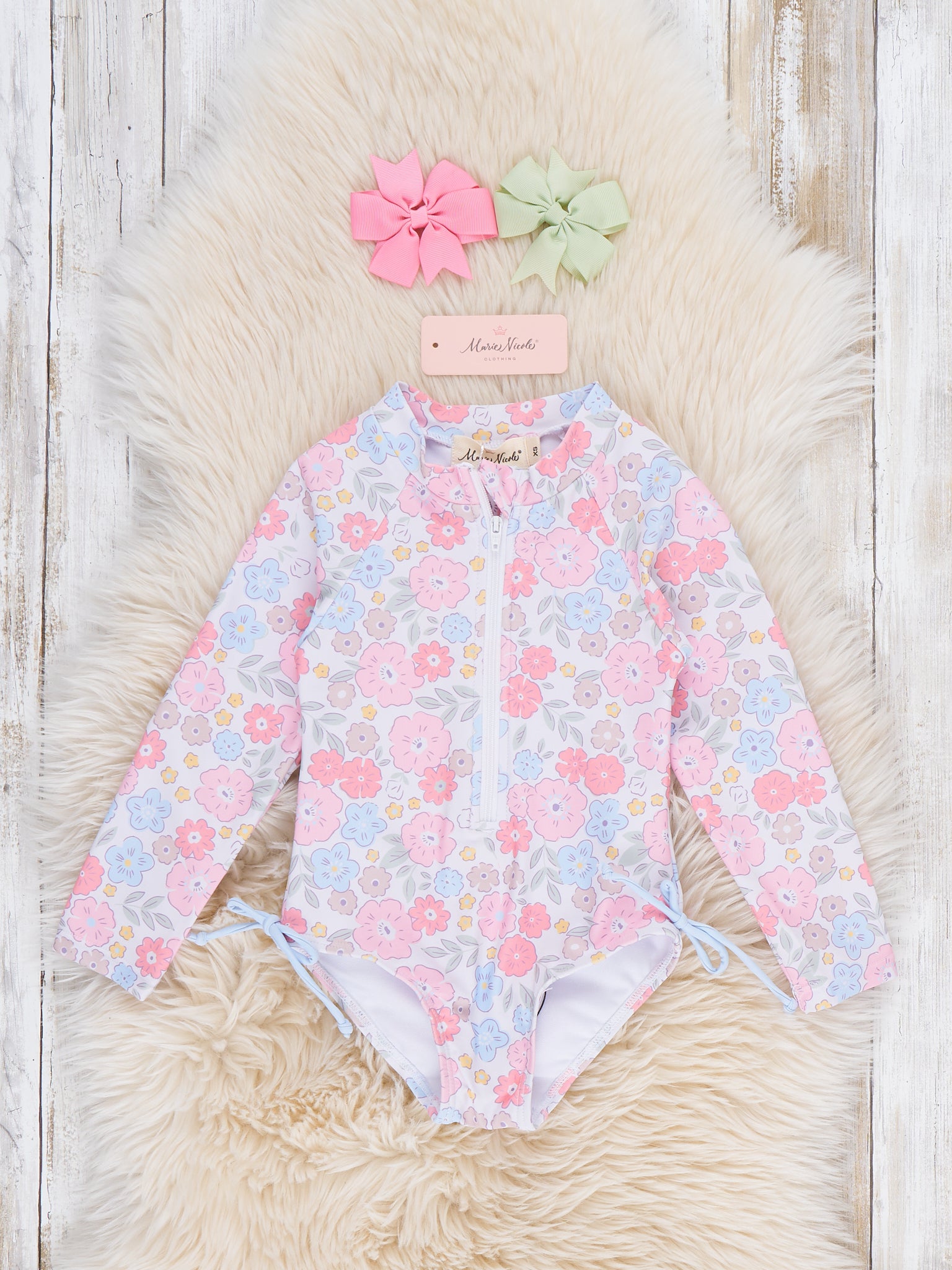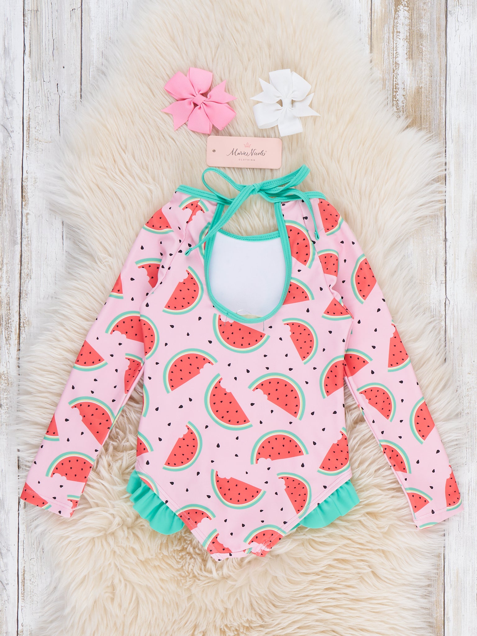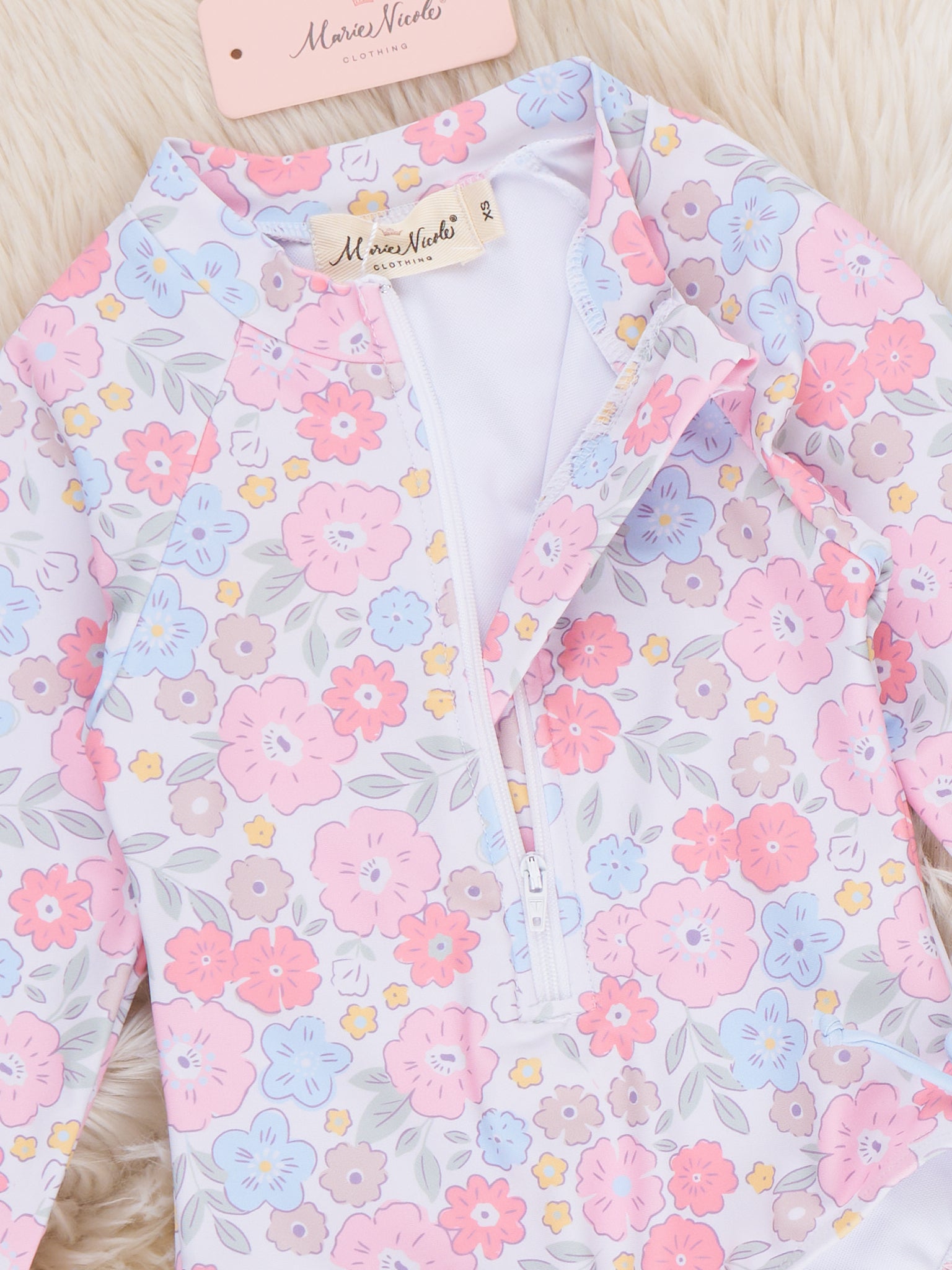 Smiley Rash Guard & Ruffle Bottoms Swimsuit