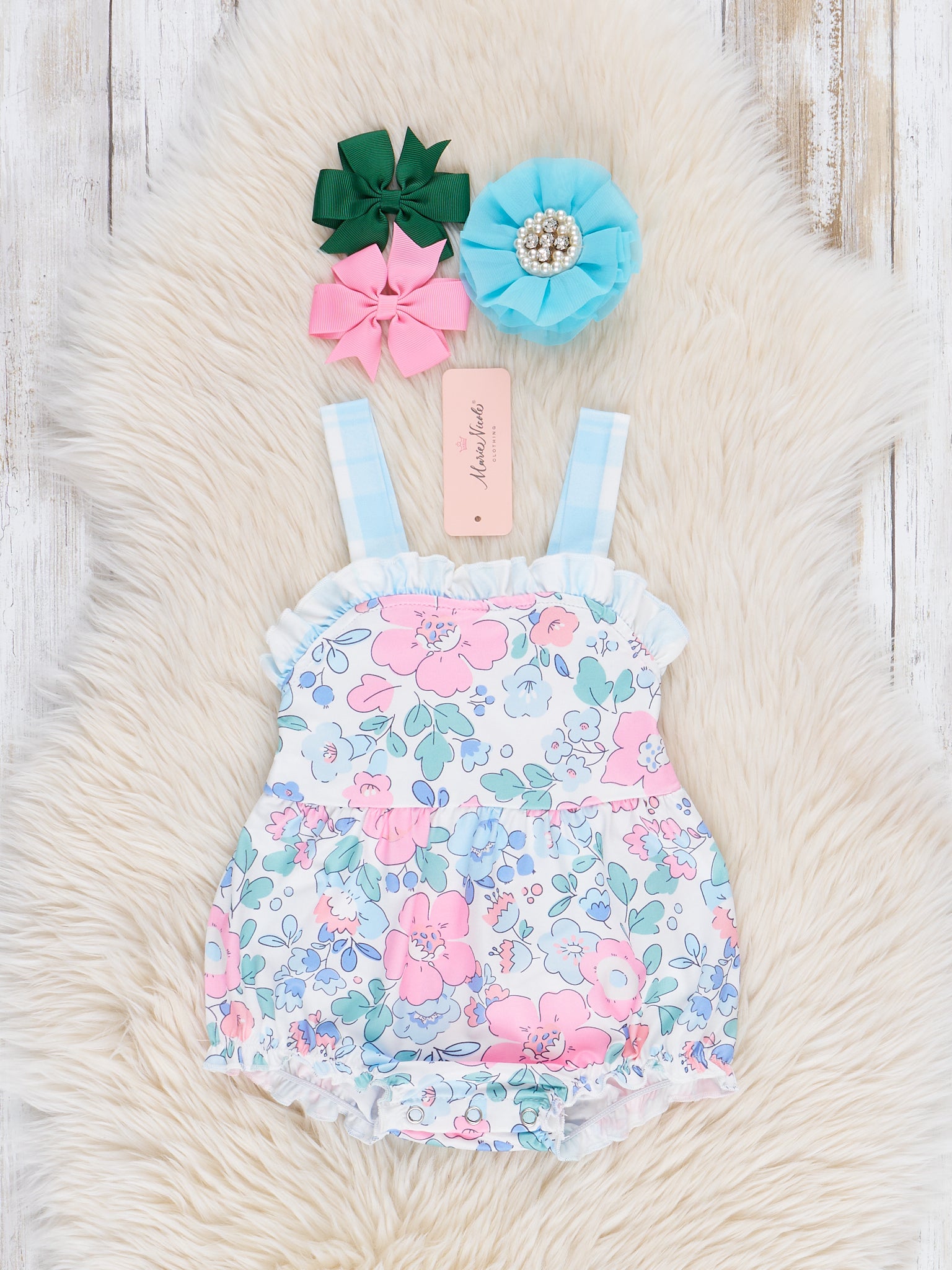 "I Love Mom" Teal Blossoms Peplum Bubble