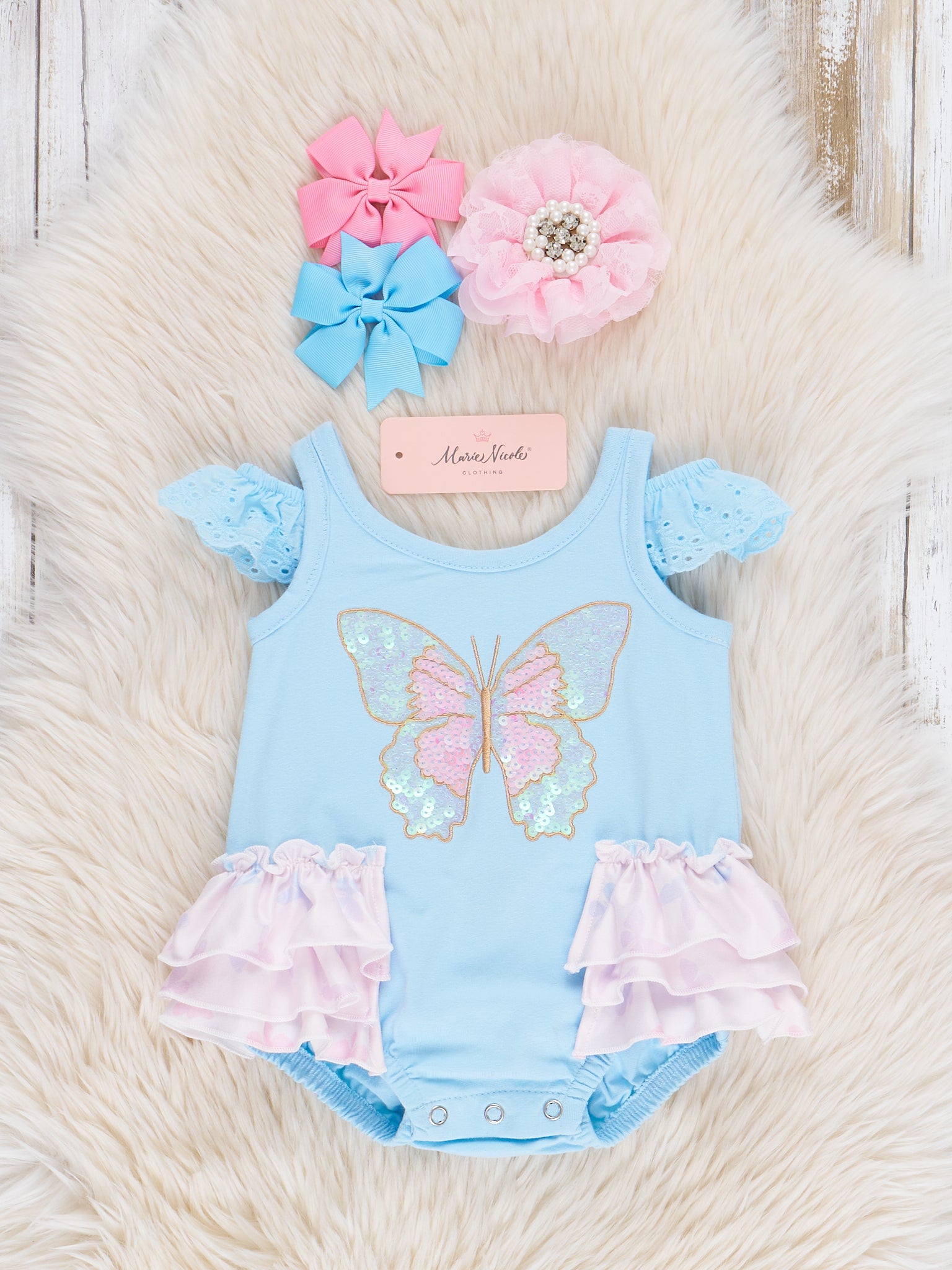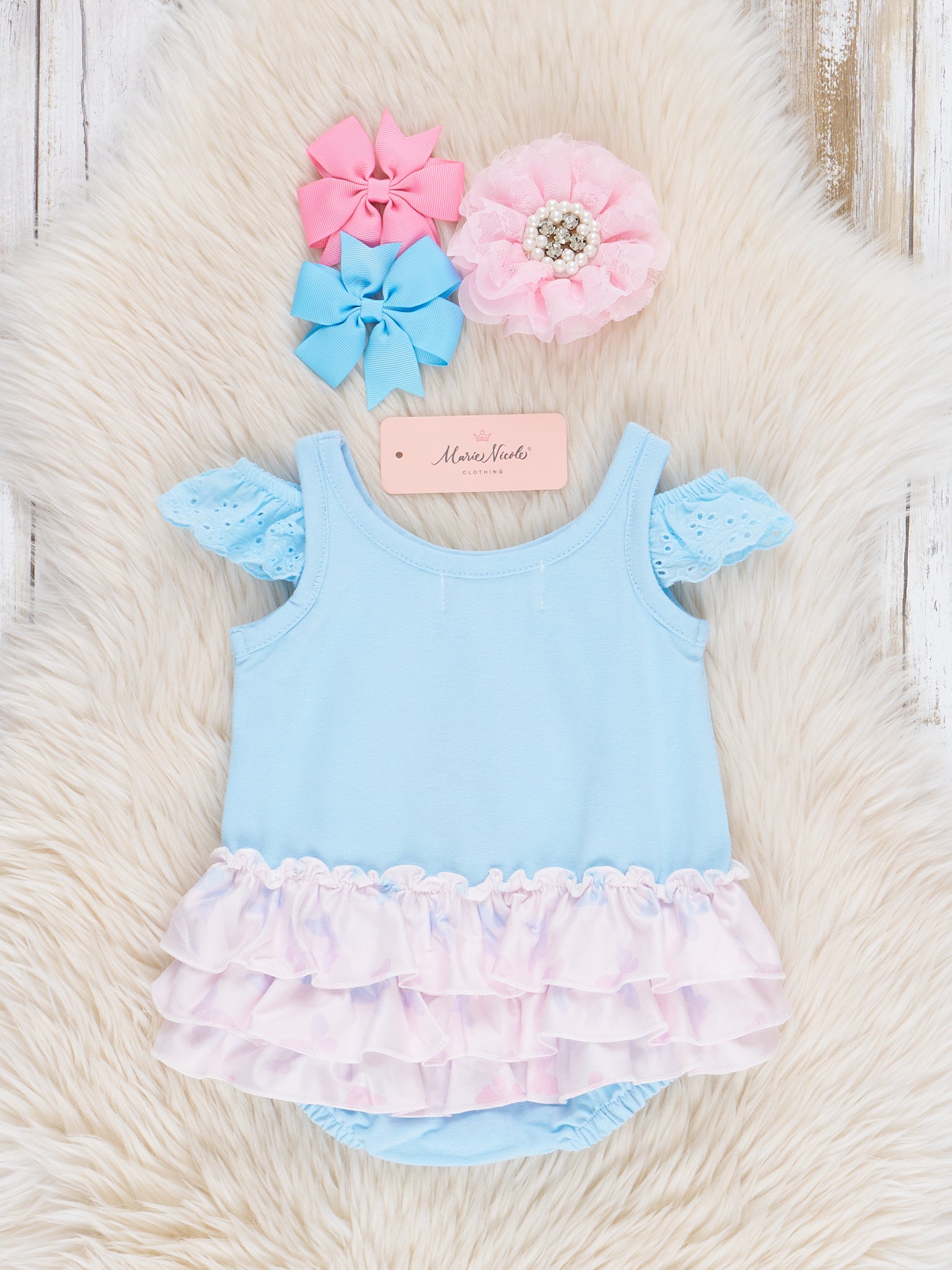 Eyelet Flutter Sleeve Garden Ruffle Bubble