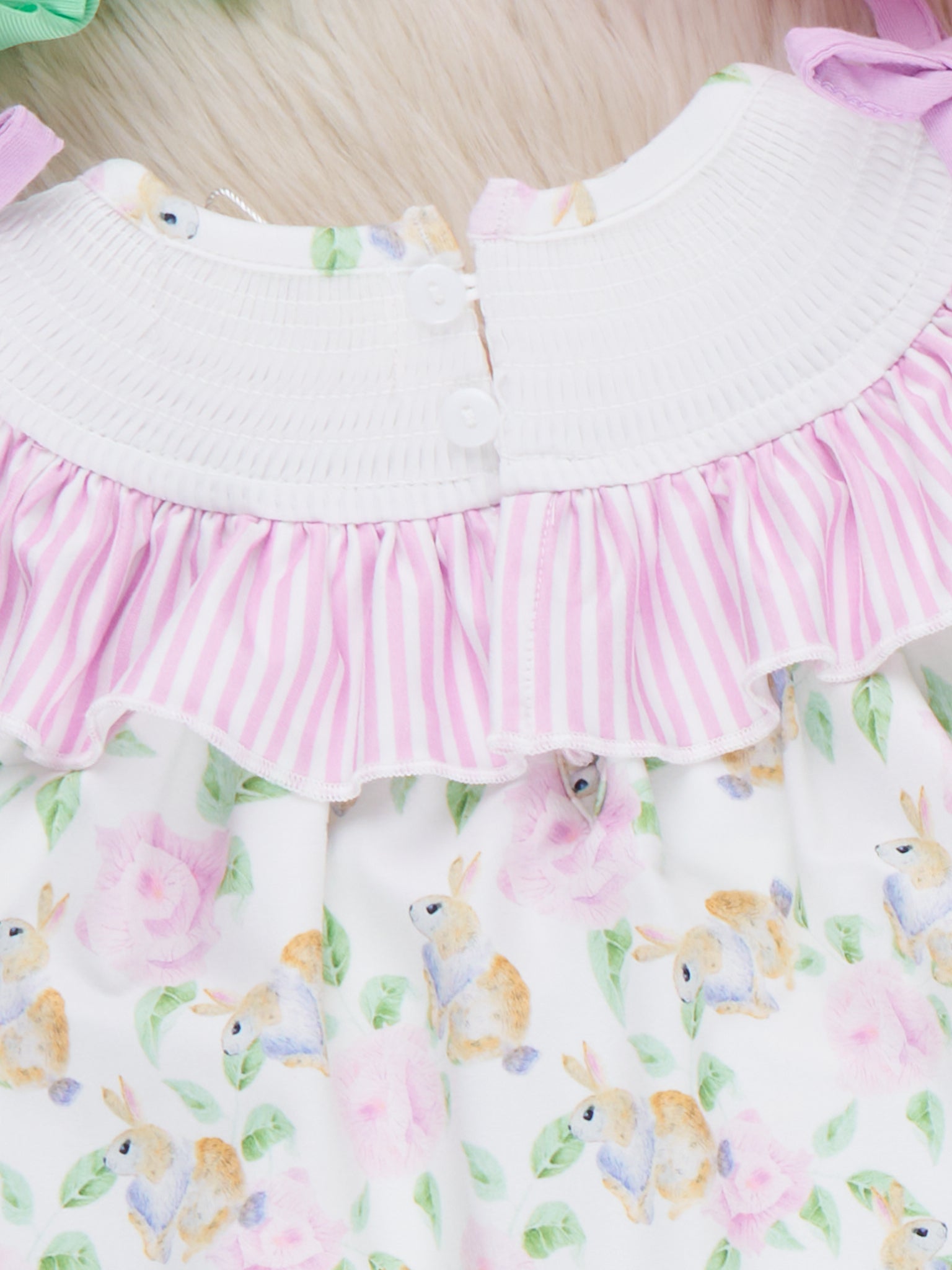 Floral Bunny Rabbits Smocked Ruffle Dress
