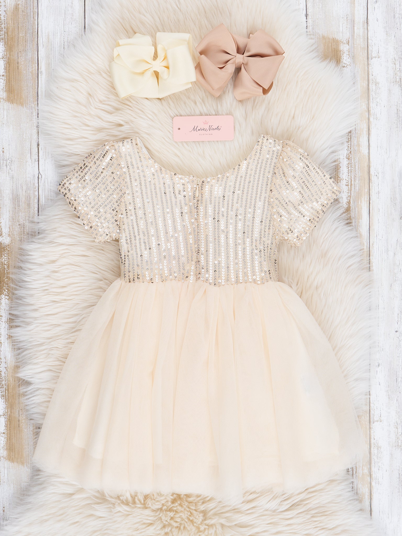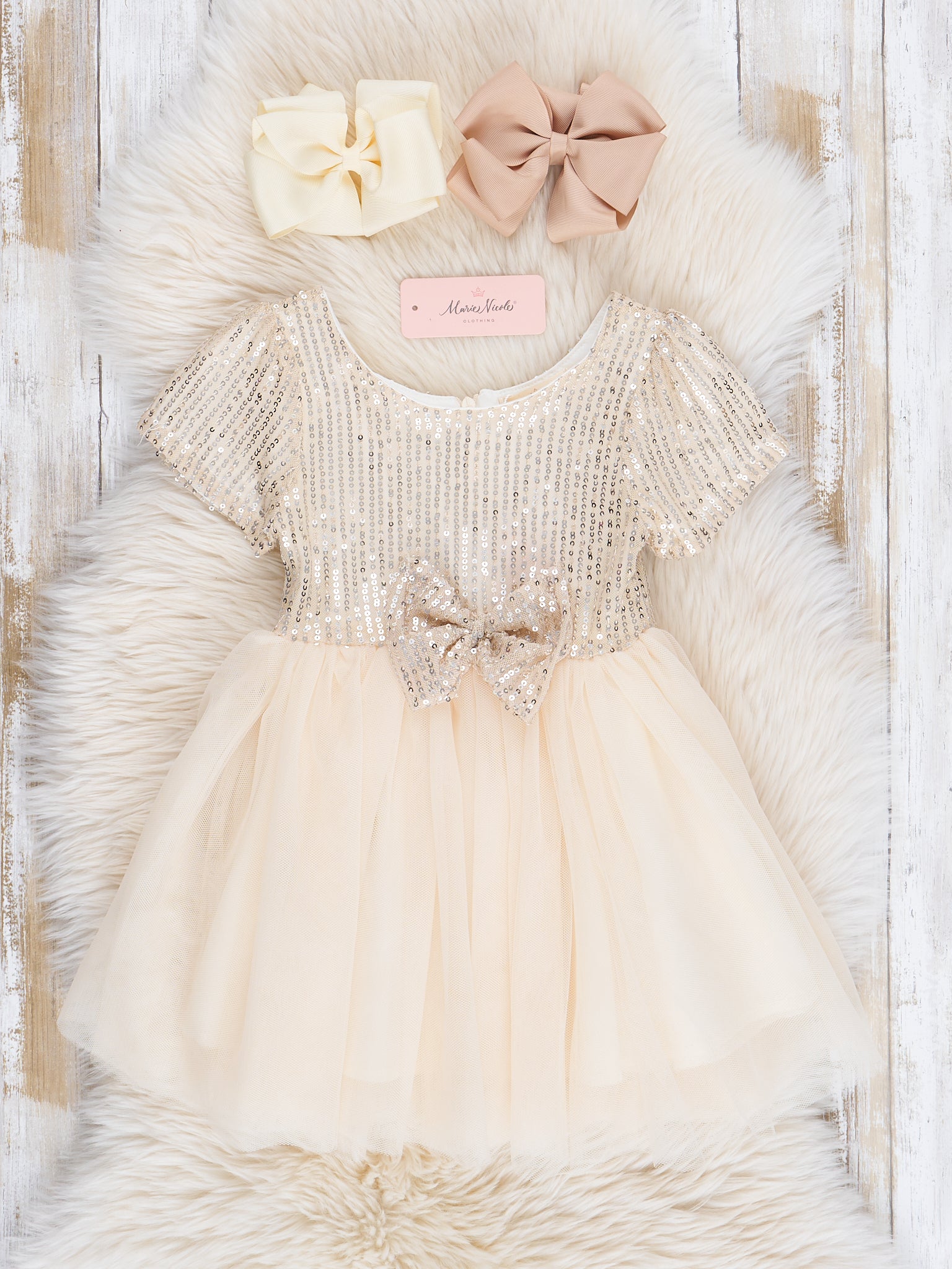 Champagne Tulle Sequin Bow Dress
