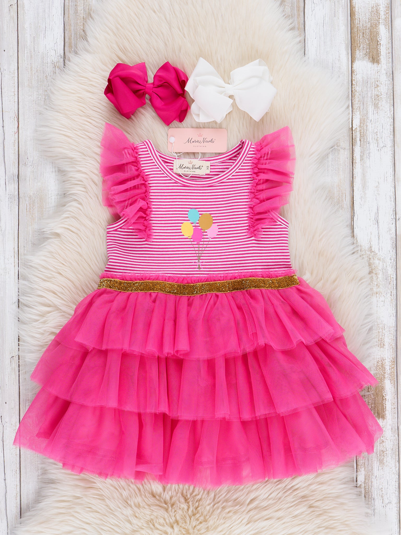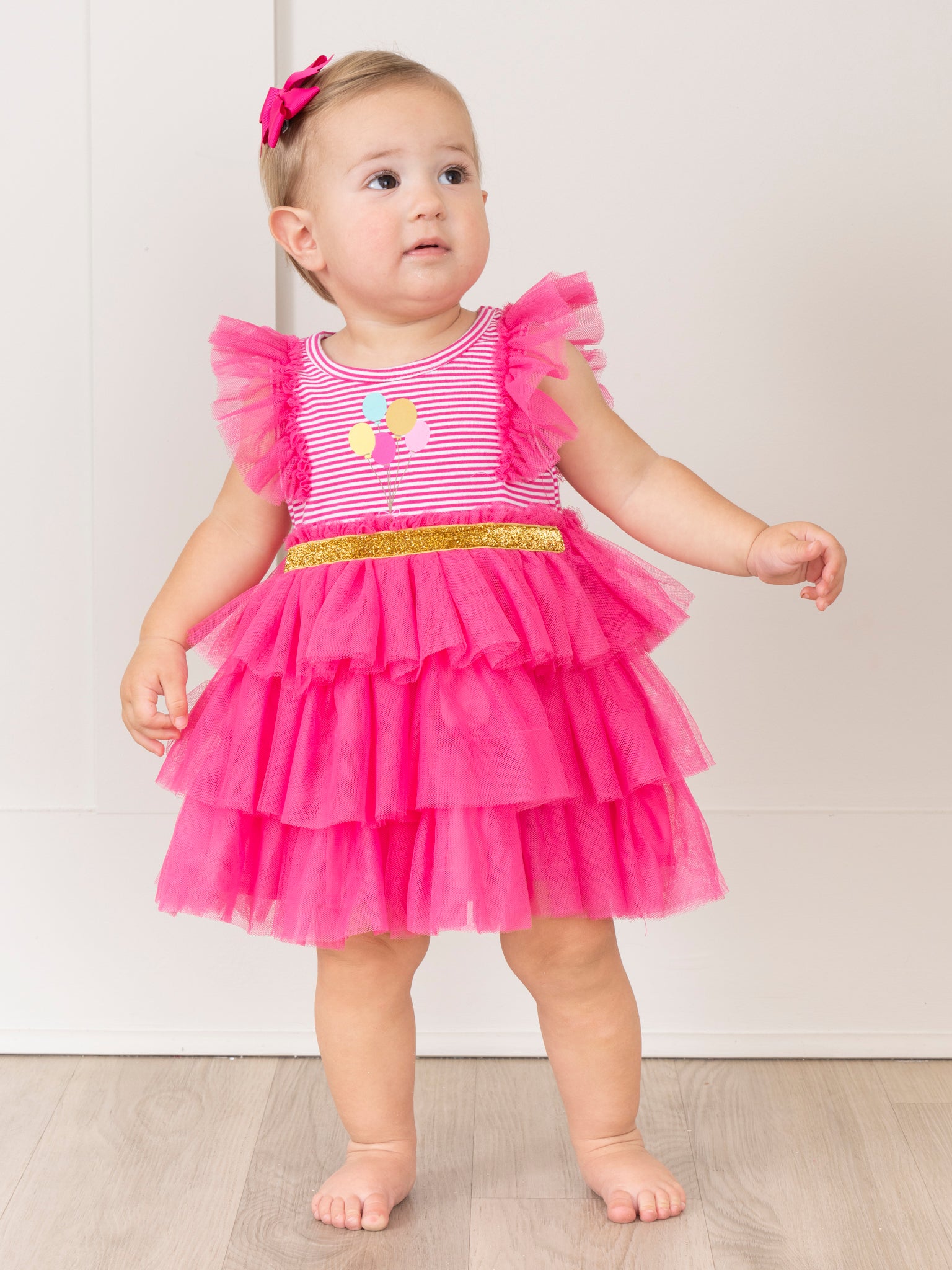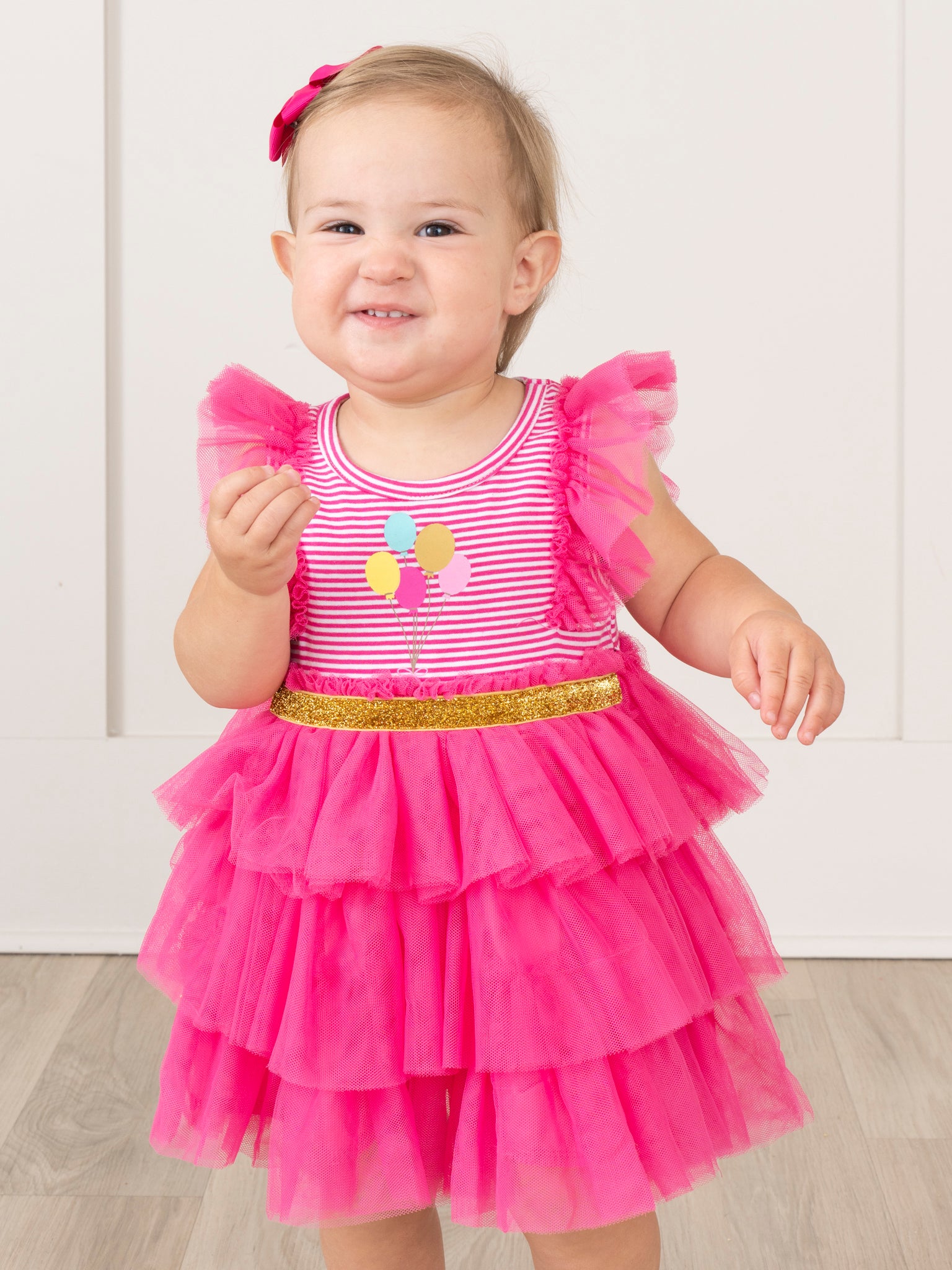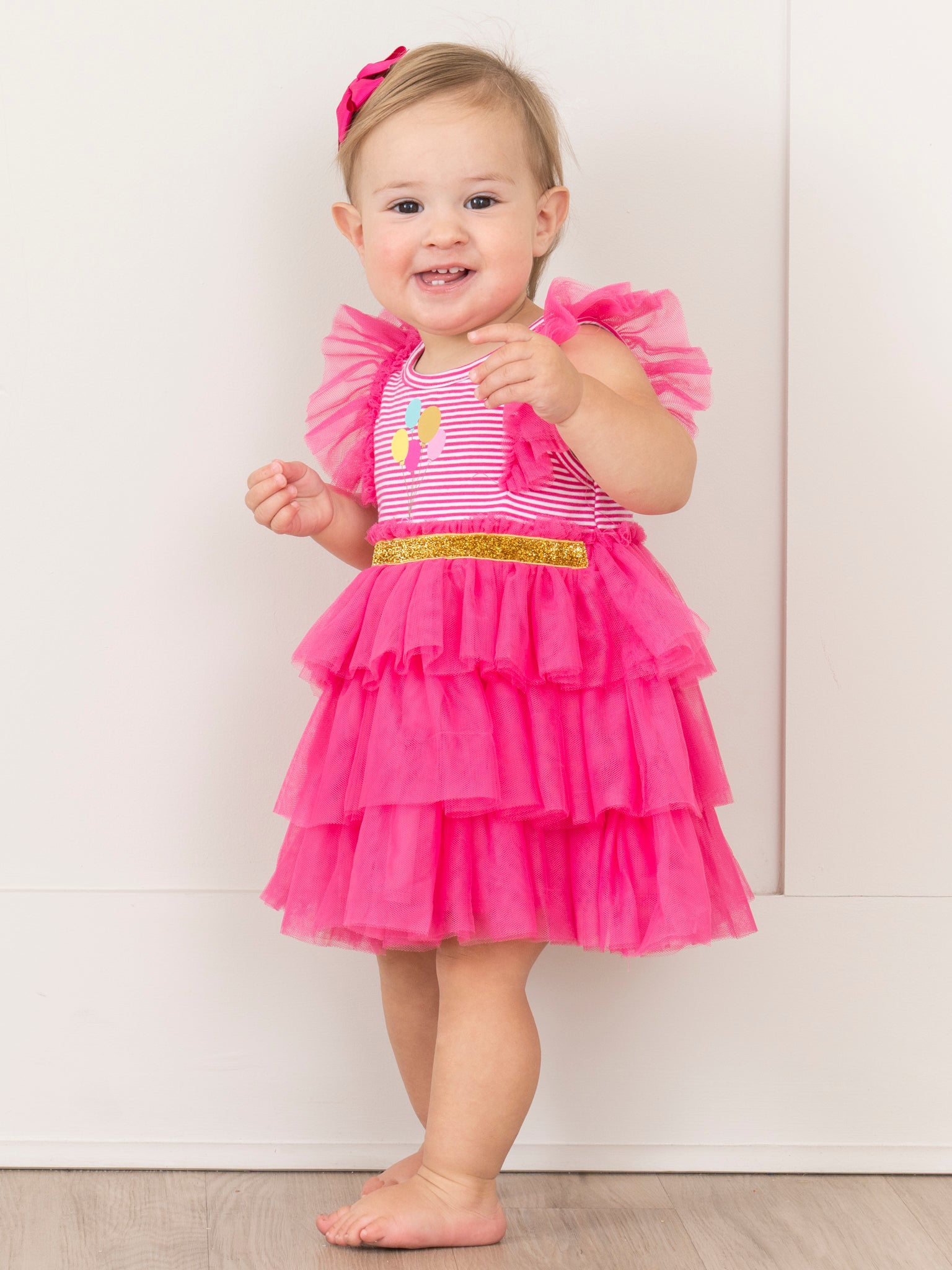 Hot Pink Birthday Balloons Tiered Tulle Dress