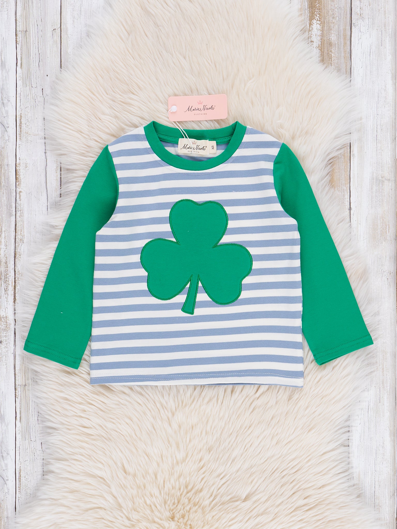 Celebrate St. Patrick's Day in style with this playful brother set by Marie Nicole Clothing! Featuring grey stripes and a green embroidered shamrock, they are perfect for a photoshoot or parade. Make your lads look oh so lucky!