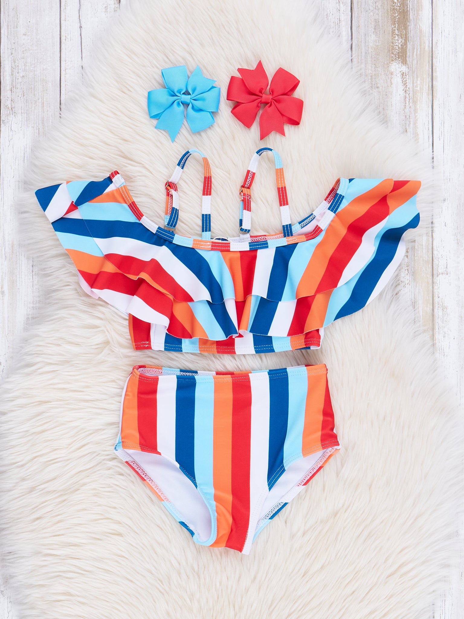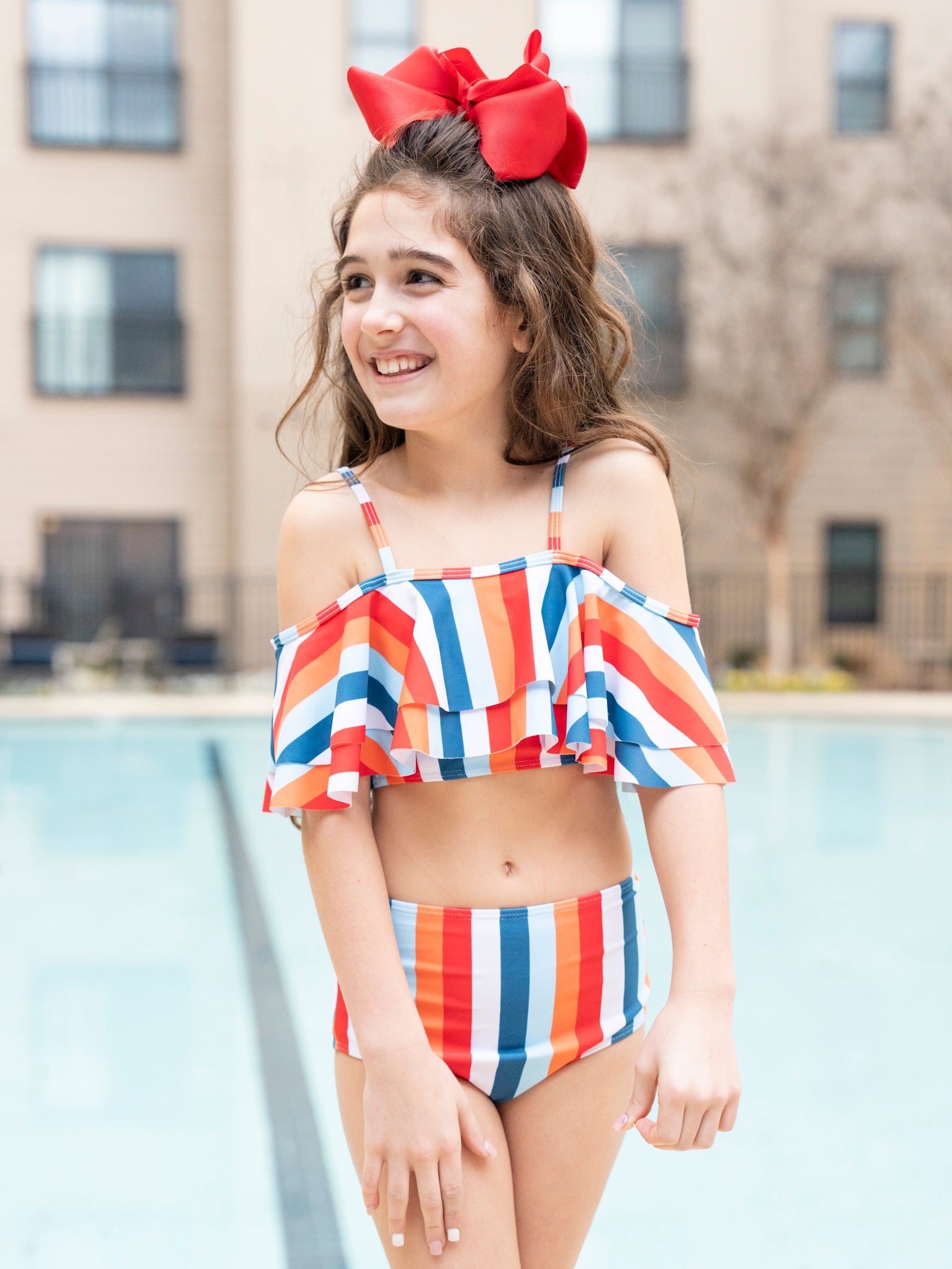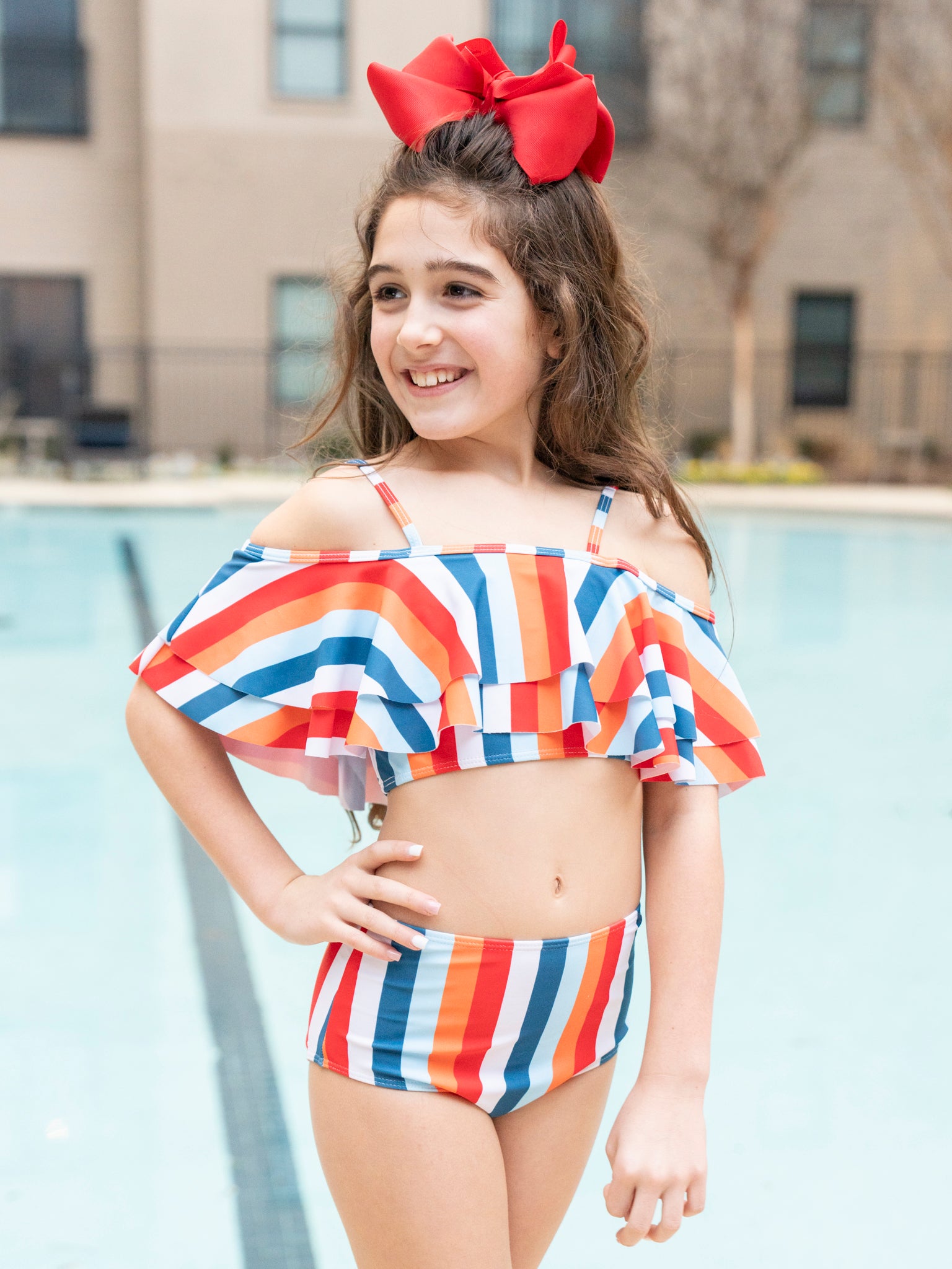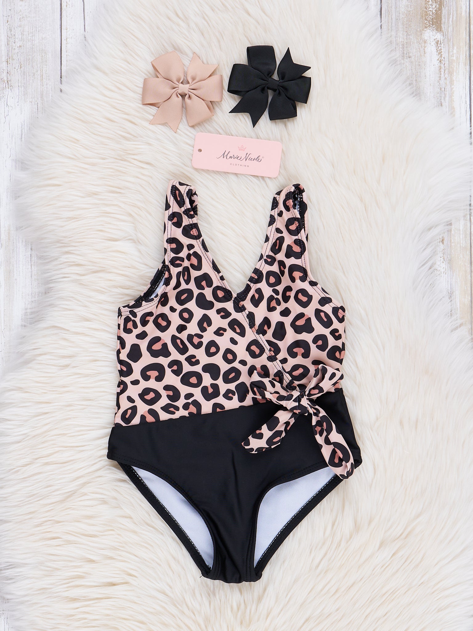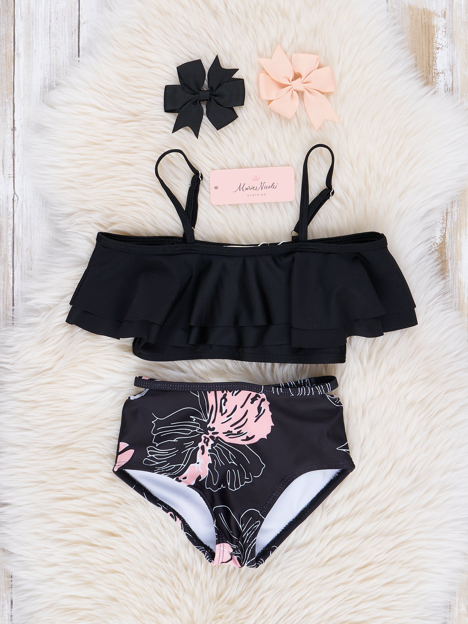 Find unique girls' swimsuits complete with matching hairbows, you’ll find something special at MNC for your little one to wear this summer. Shop our extensive children’s swimwear line from Marie Nicole Clothing today.