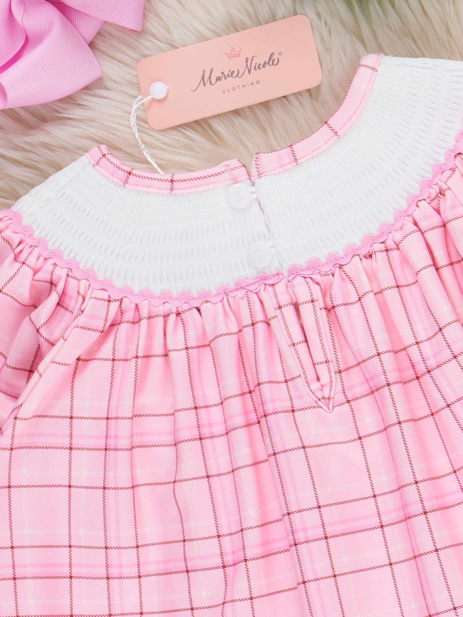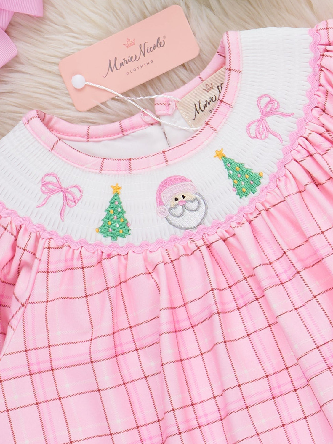 The Plaid Christmas Delight Smocked Dress by Marie Nicole Clothing is a charming long-sleeve dress made from soft plaid, featuring gentle smocking at the neckline and a delicately embroidered collar. This classic silhouette offers everyday comfort and timeless appeal, making it a versatile choice for special occasions or playful days out.