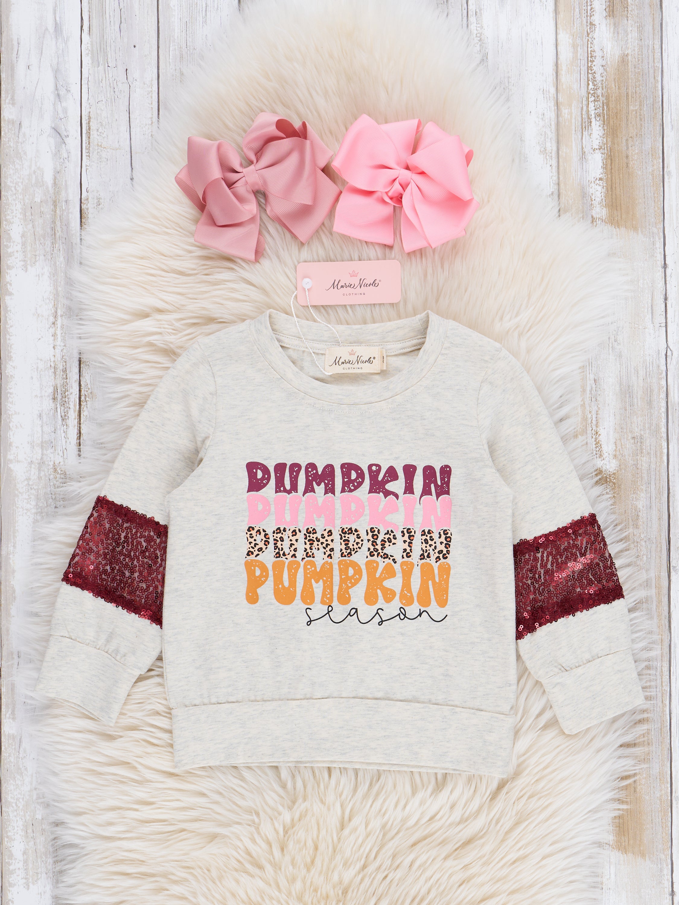 Get ready for pumpkin season with this quirky and playful "Mom & Me" grey shirt! Featuring sequin sleeve detail, this top is perfect for matching with your little one. Embrace the fun and cozy vibes of fall with this trendy shirt. Fall never looked so cute!