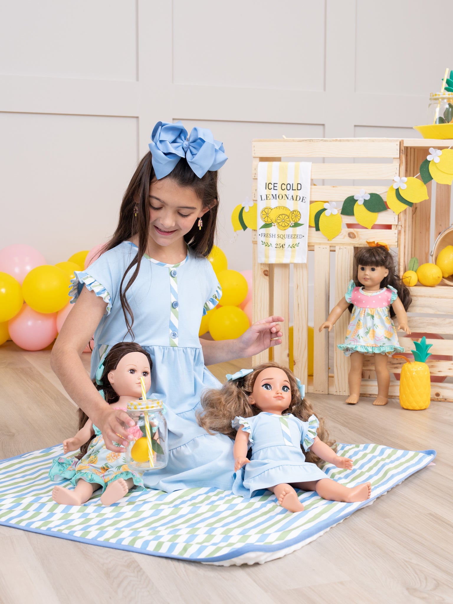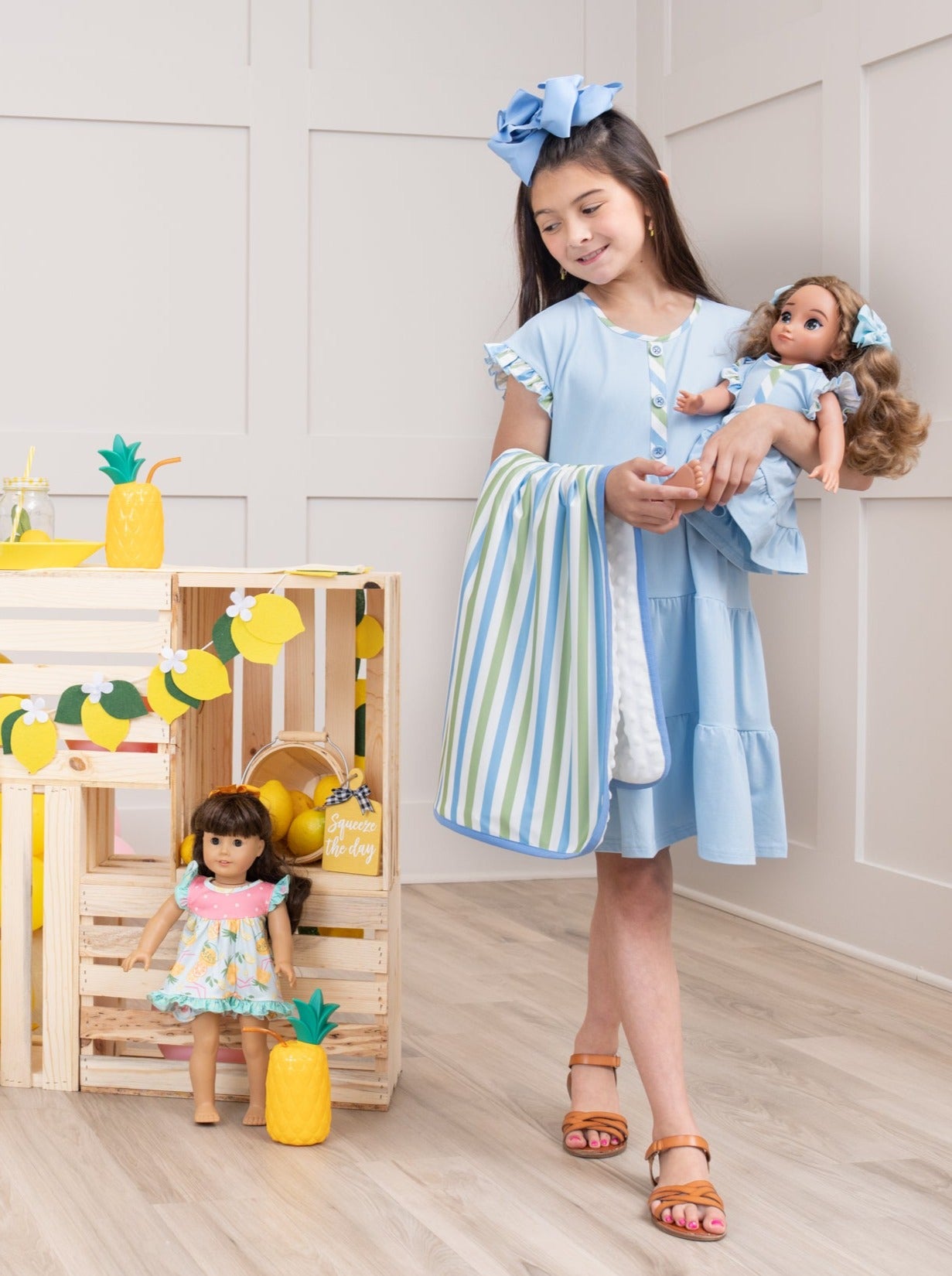 This collection features a stunning, hand-drawn print with a medley of pineapples, lemons, limes, and oranges.