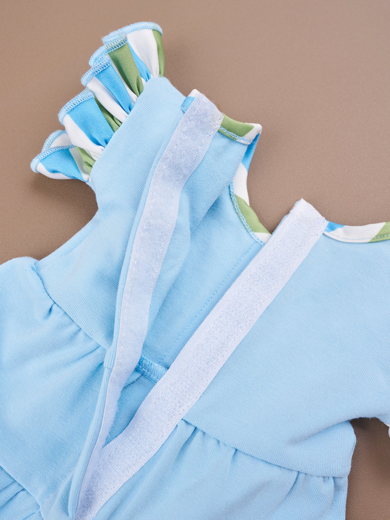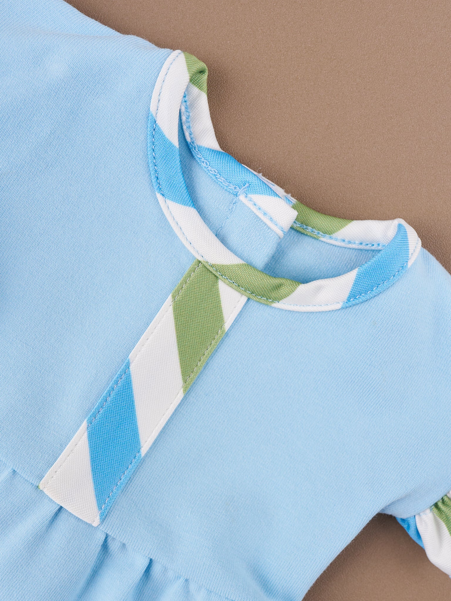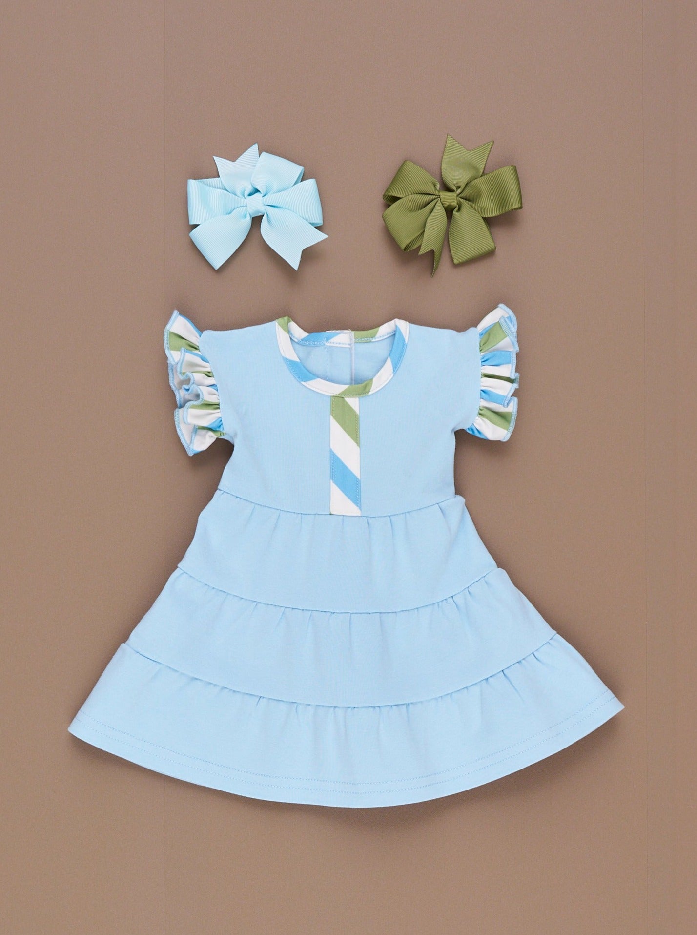Say hello to our Tropical Twist Collection. Each garment is made of a high-quality material that ensures comfort, durability, and longevity. This doll dress features our Tropical Twist stripes, ruffle trim, & velcro backs for easy changing.