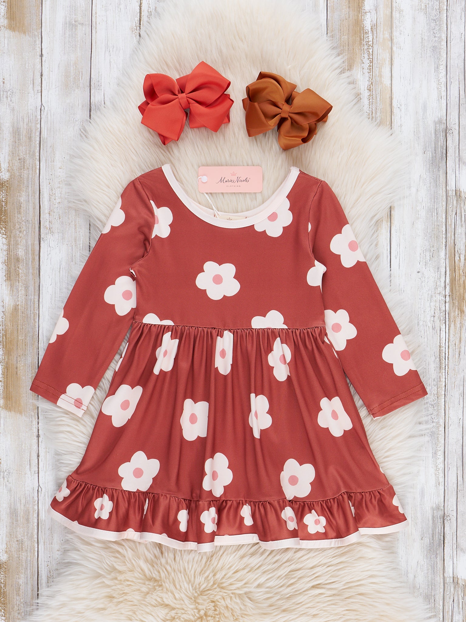 The All the Fall Things Floral Dress is a cozy and charming favorite, perfect for everything the season brings. Featuring a beautiful autumn floral print in warm, earthy tones and finished with soft ruffle details, this dress from Marie Nicole Clothing captures the spirit of fall in every stitch. Lightweight and comfy, it’s ideal for pumpkin patch visits, family gatherings, or any day she wants to twirl through all her favorite fall things.