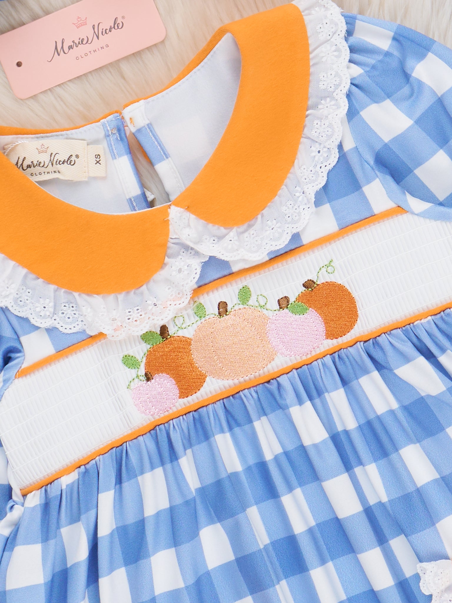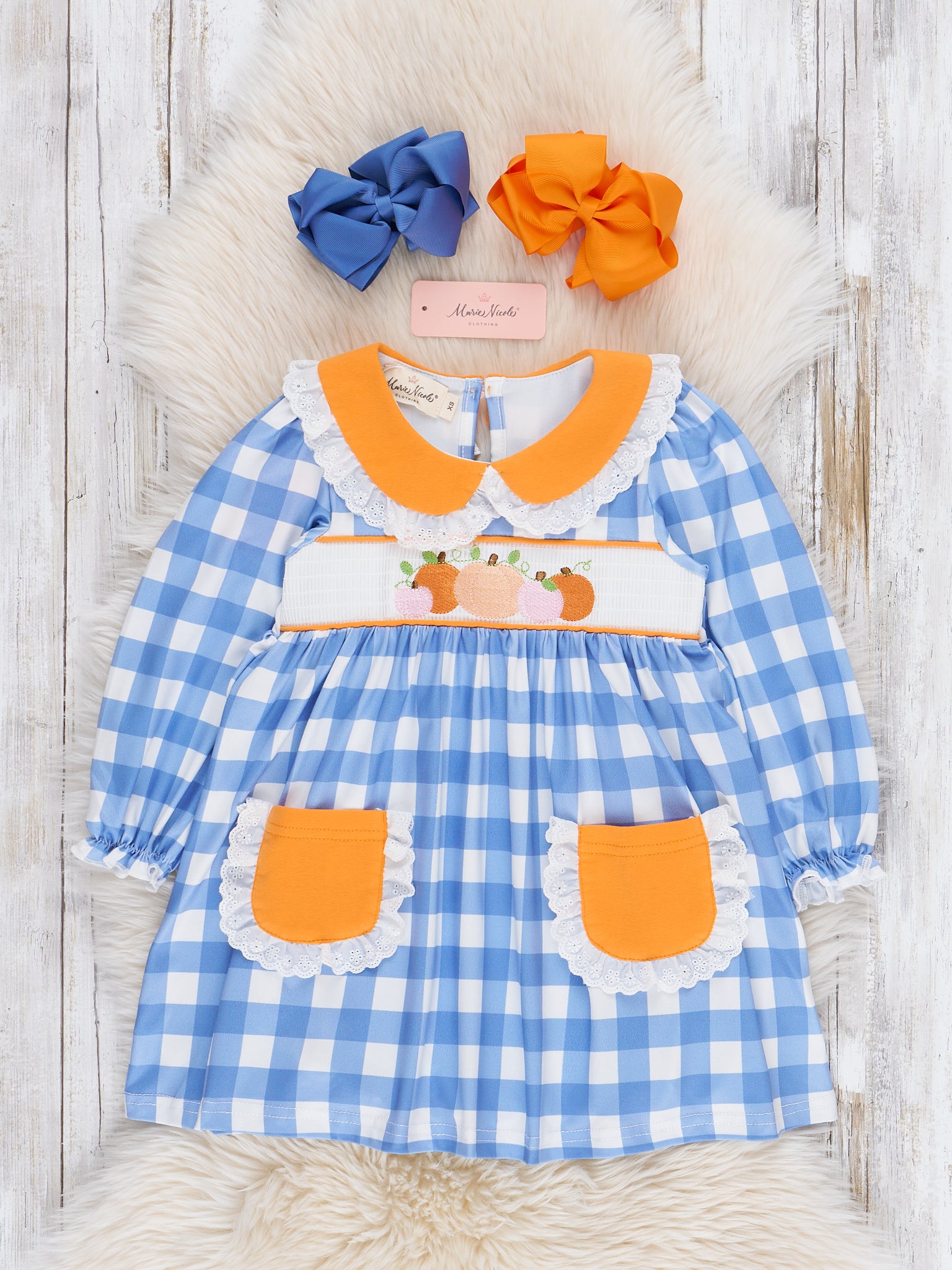 Don't miss out on this perfect fall sibling set! The Blue Plaid & Pumpkin Smocked Dress will have your youngsters styling with its smocked design and festive fall colors. Perfect for pumpkin picking or hay rides! (Don't forget to take pics!)
