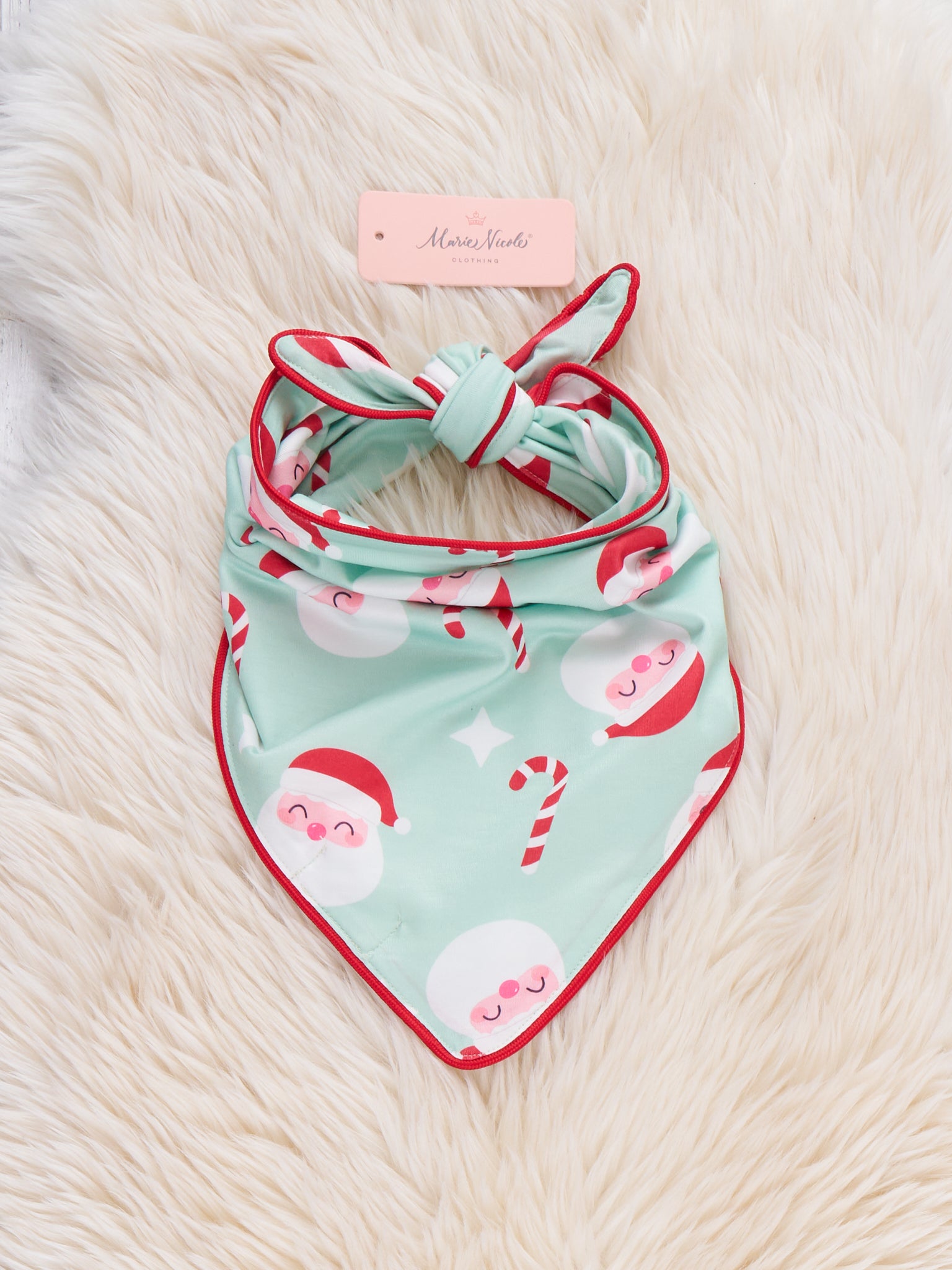 The Cane & Claus Holiday Dog Bandana is a festive pet accessory featuring playful Santa and candy cane patterns, designed for holiday charm and easy wear. Perfect for dressing up your furry friend for seasonal celebrations, this bandana brings together whimsy and comfort to make pets part of the holiday fun.