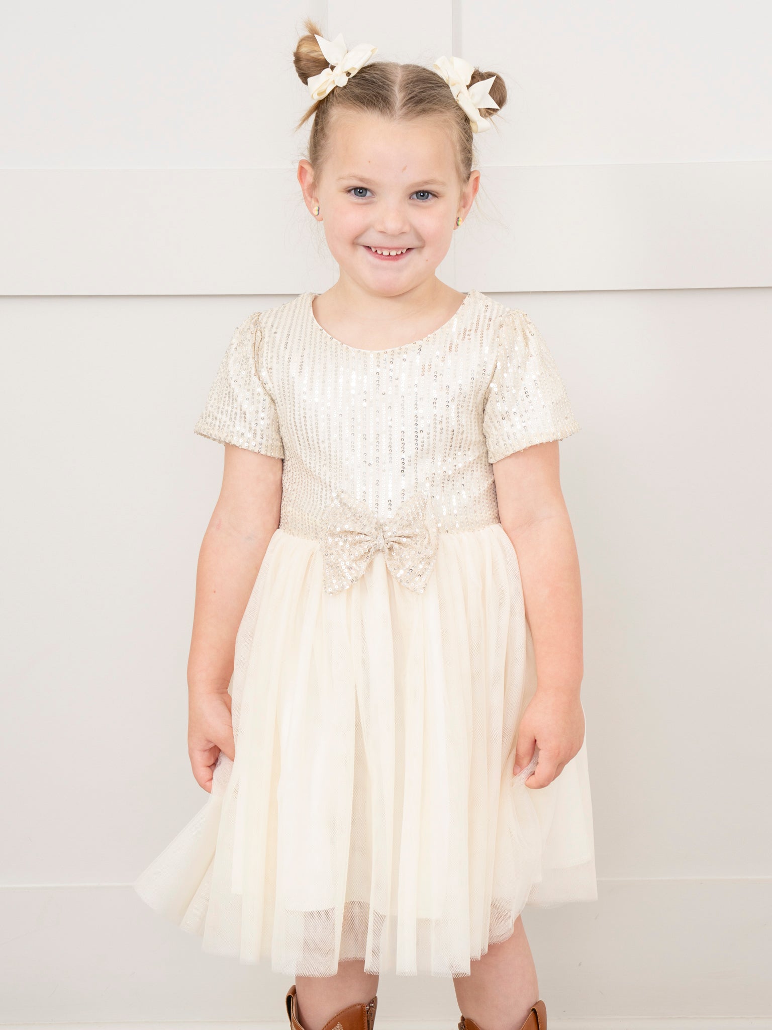 Champagne Tulle Sequin Bow Dress