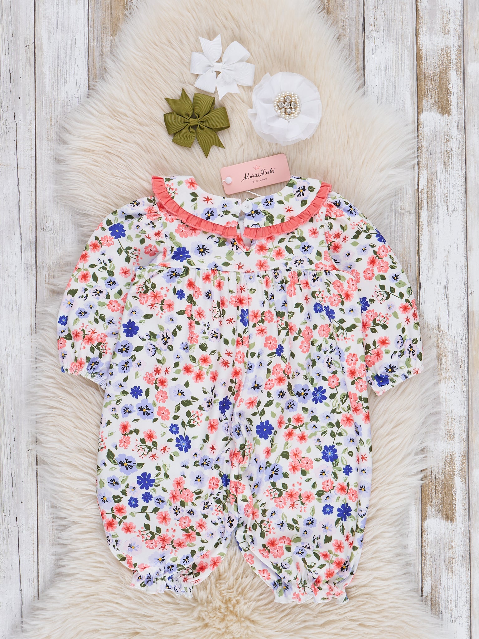 Get ready for some major flower power with our Coral Crazy Daisies Ruffle Romper! Perfect for your little girl, this romper features a fun allover daisy print and playful coral ruffle trim. Don't forget to check out our sister set for even more cuteness!