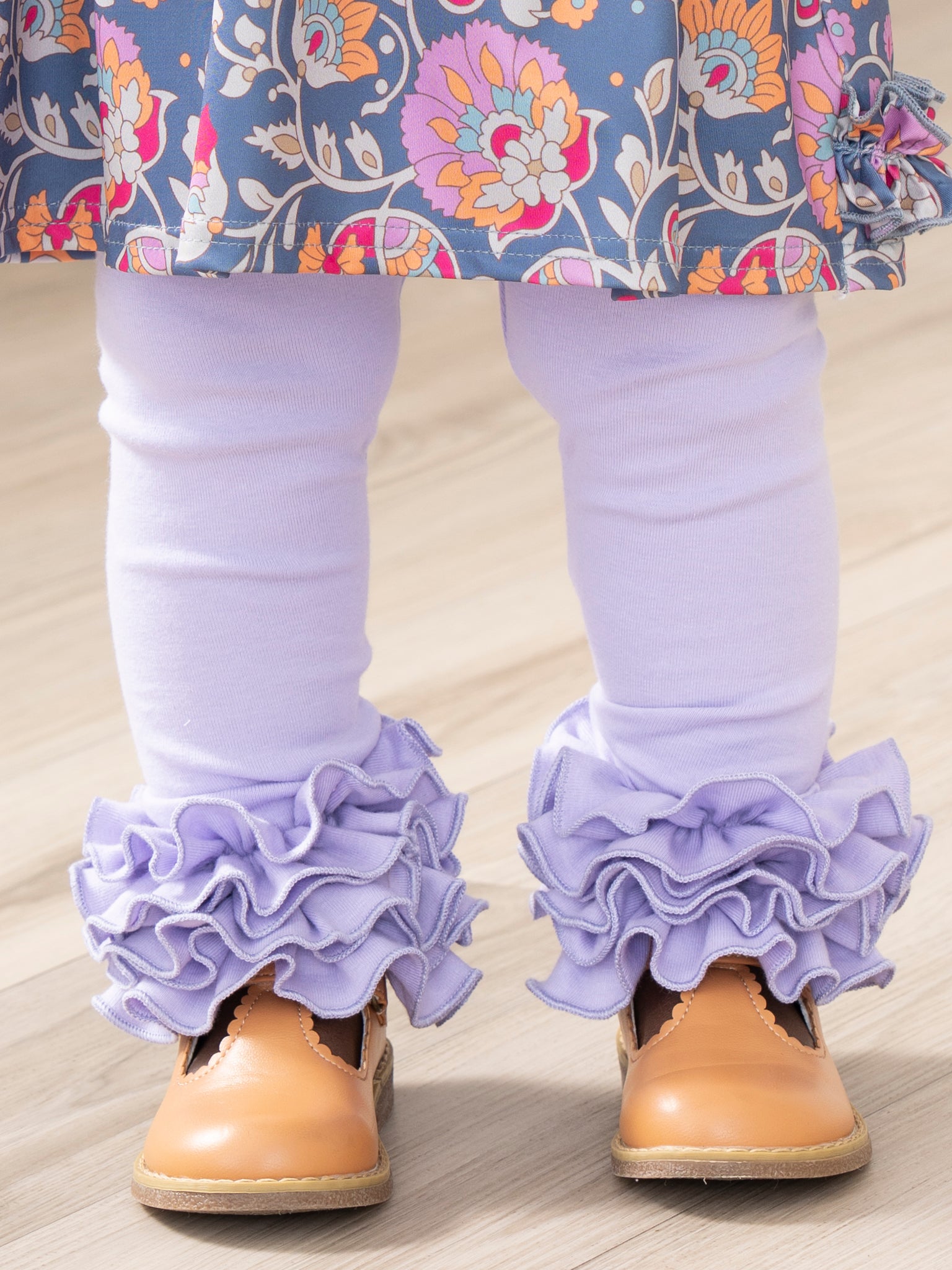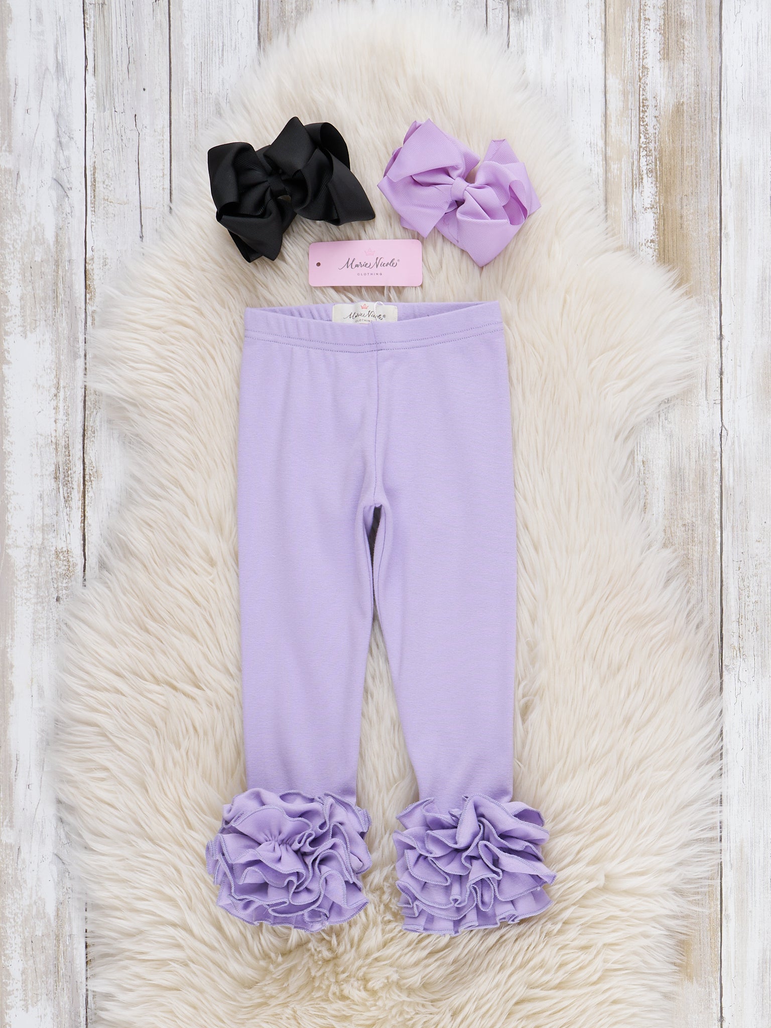 The Cotton Icing Ruffle Leggings in Lavender are the perfect closet staple, adding just the right amount of frills and flare. This pair of leggings from Marie Nicole Clothing looks extra sweet with the icing ruffle bottoms. Crafted with soft, comfortable cotton, your girl can look and feel great all day, and you can match them with any of our MNC-exclusive swing tops and tunics. Shop all MNCxBASICS here!