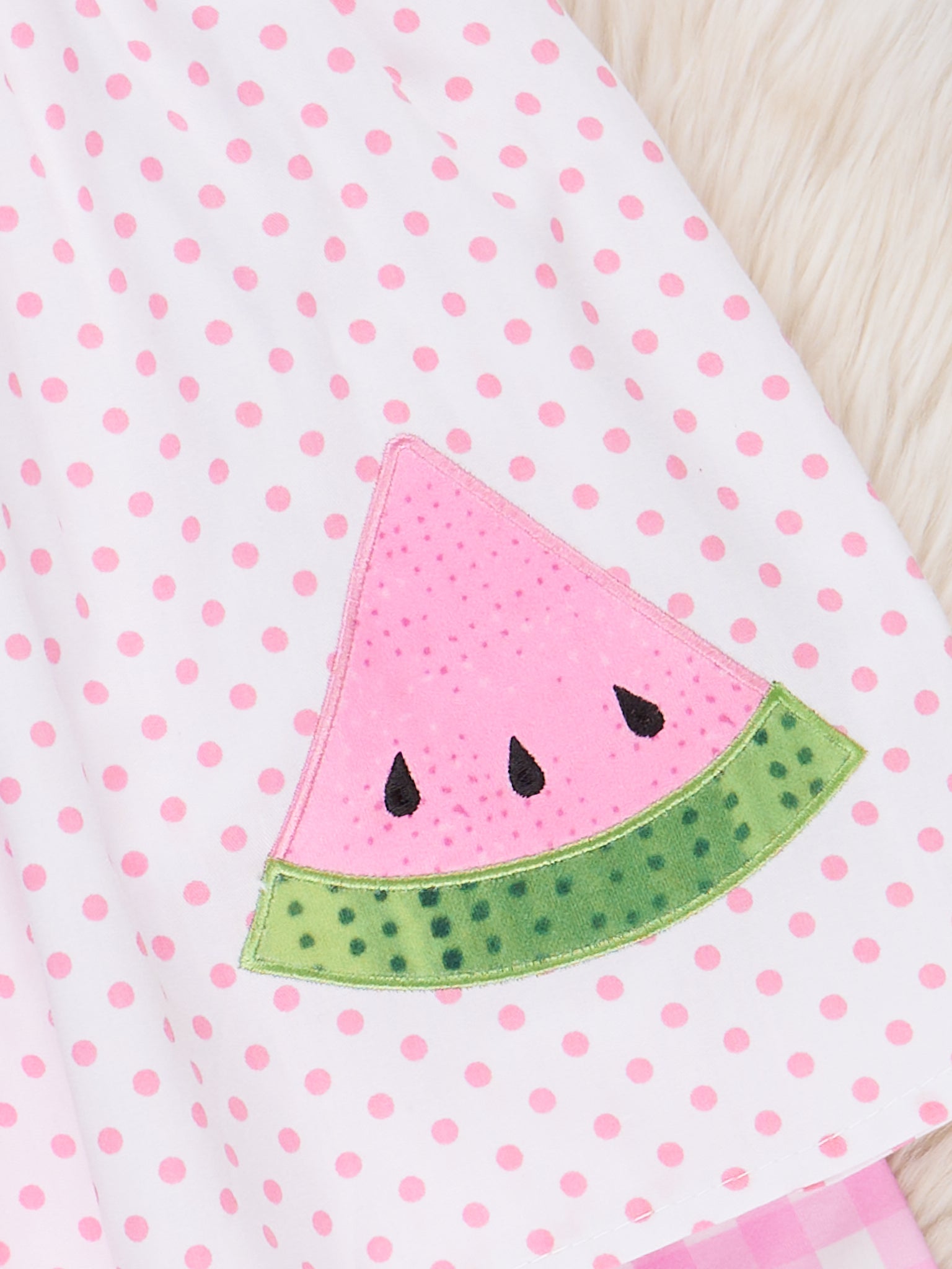 Dotty Watermelon Embroidered Icing Ruffle Outfit