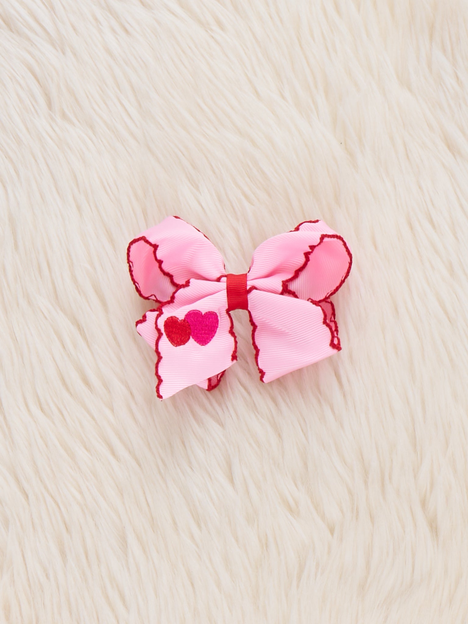 Double Heart Scallop Embroidered Bow