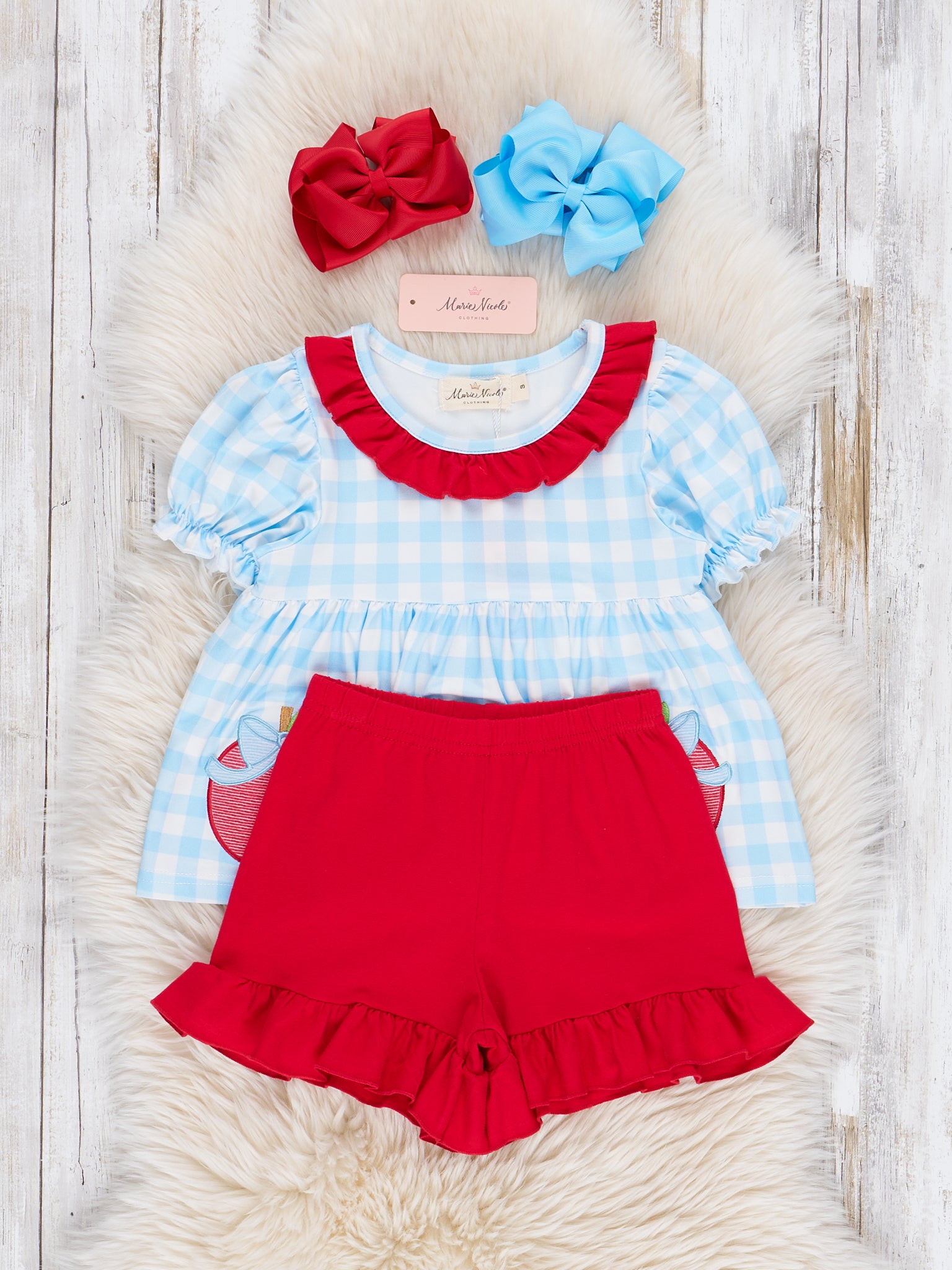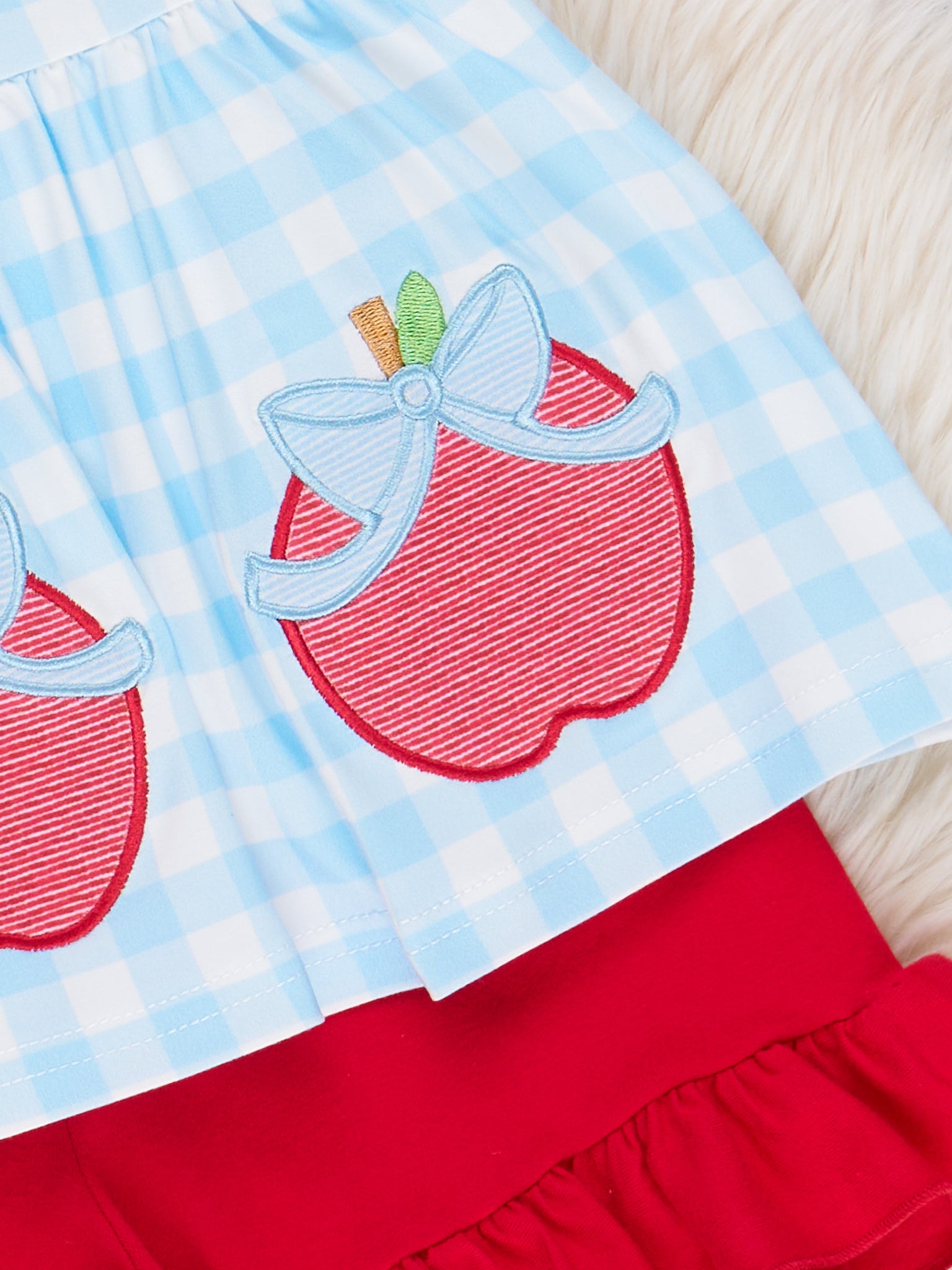 The Fresh Picked Apples Outfit is a classic and charming choice, perfect for school days, apple picking, and sweet fall moments. Featuring a delightful apple print and finished with soft ruffle accents, this outfit from Marie Nicole Clothing brings together timeless style and playful comfort. Lightweight and breathable, it’s made for twirls, smiles, and picture-perfect memories.