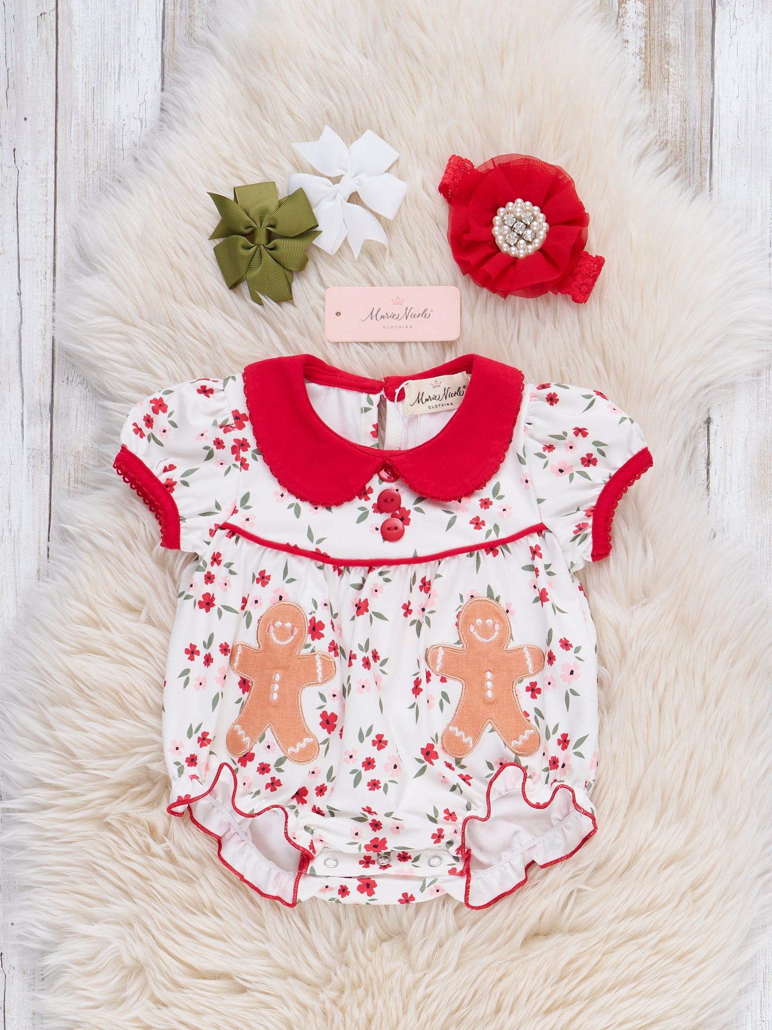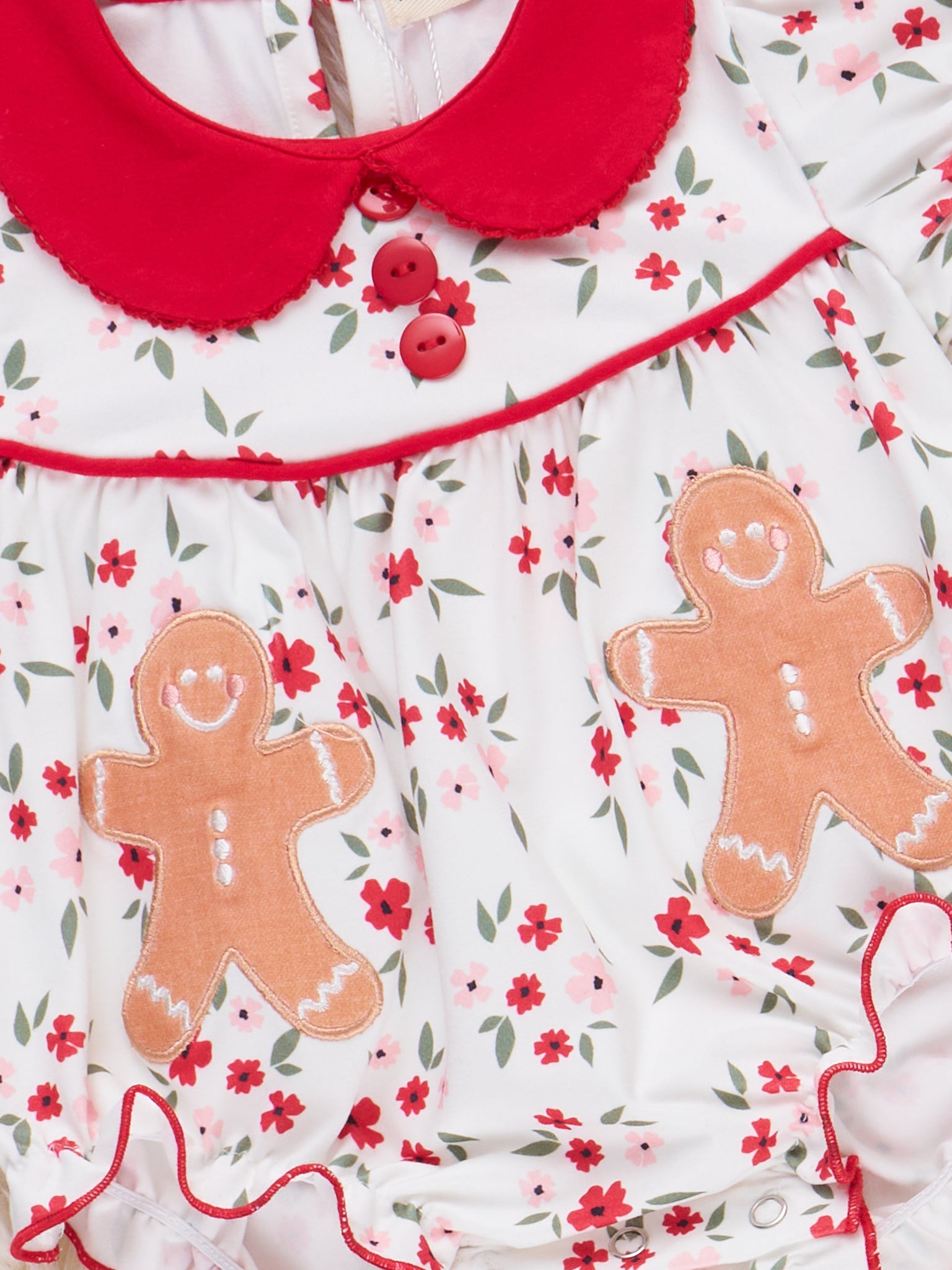The Gingerbread Garden Embroidered Bubble is a sweet and playful holiday romper featuring charming gingerbread embroidery and delightful seasonal details. Created by Marie Nicole Clothing, this bubble is designed for comfort and easy dressing, making it a cheerful choice for Christmas celebrations, family gatherings, and creating festive memories with little ones.
