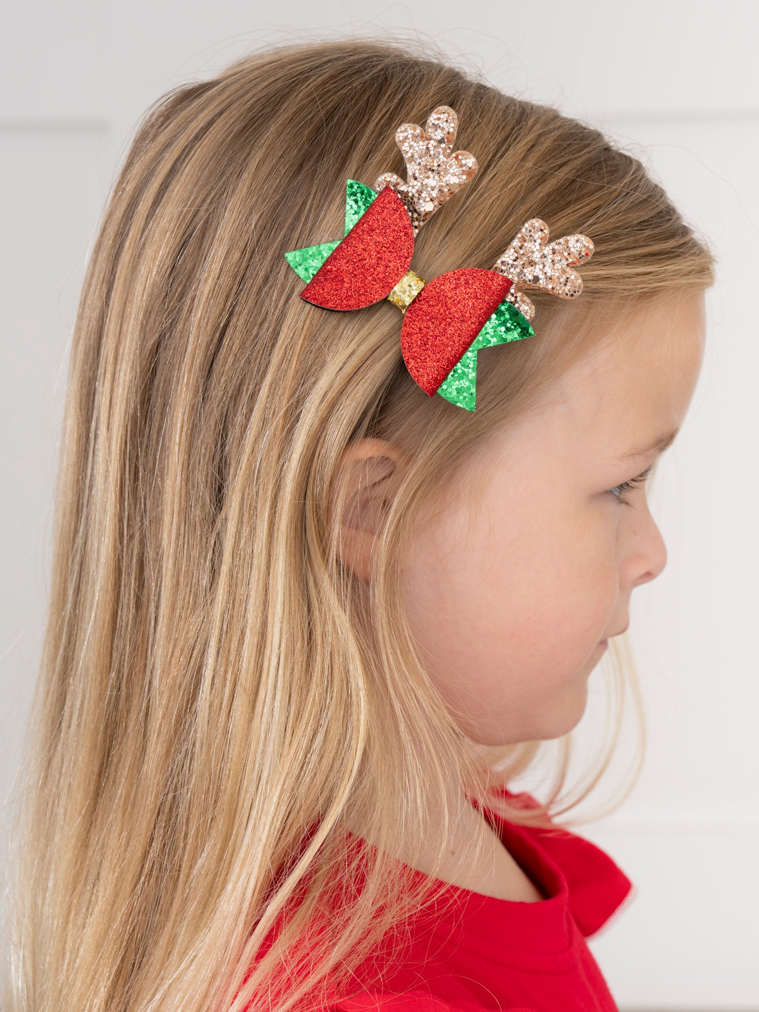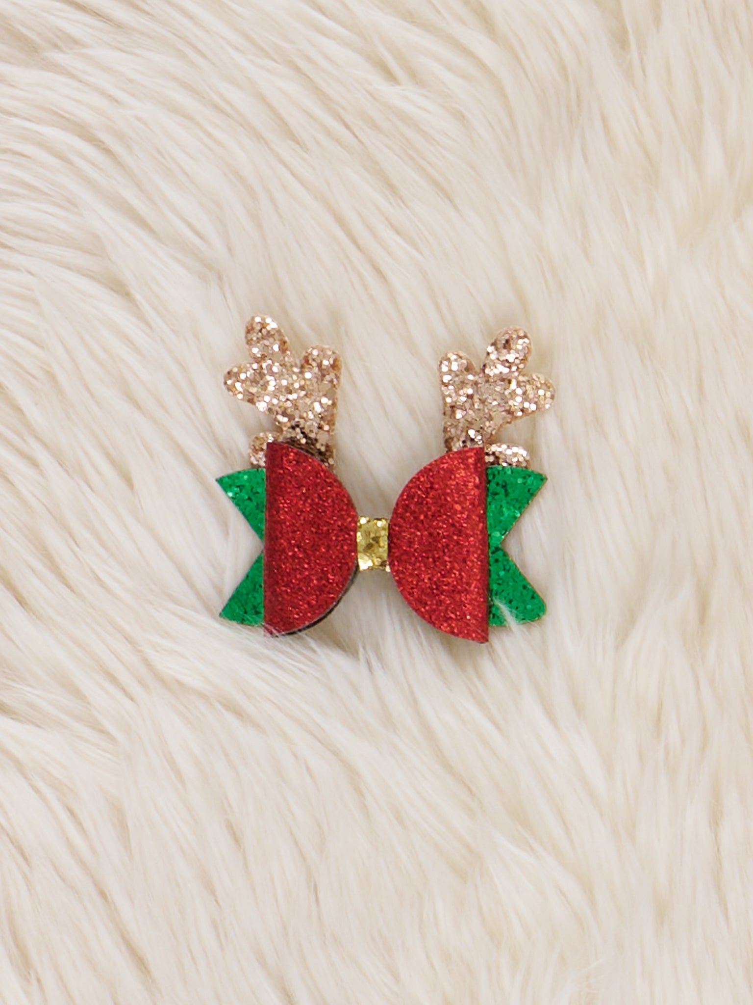Before the reindeers stop on your rooftop, get you little one the perfect Glitter Reindeer Bow! Sparkly with red, green, and gold, it is festive to wear any winter events, holiday celebrations, and Christmas-themed photoshoots!