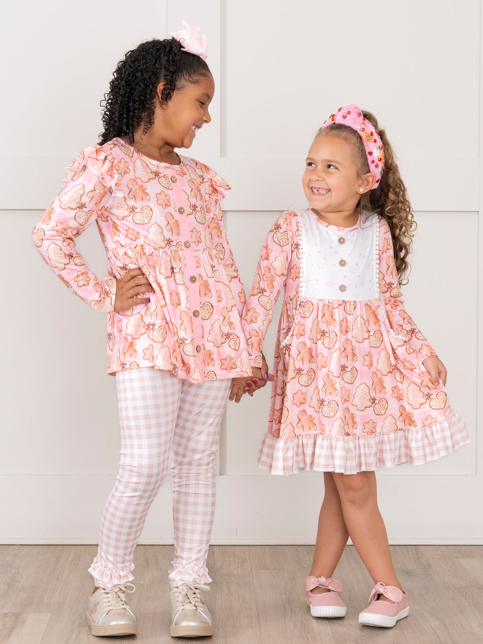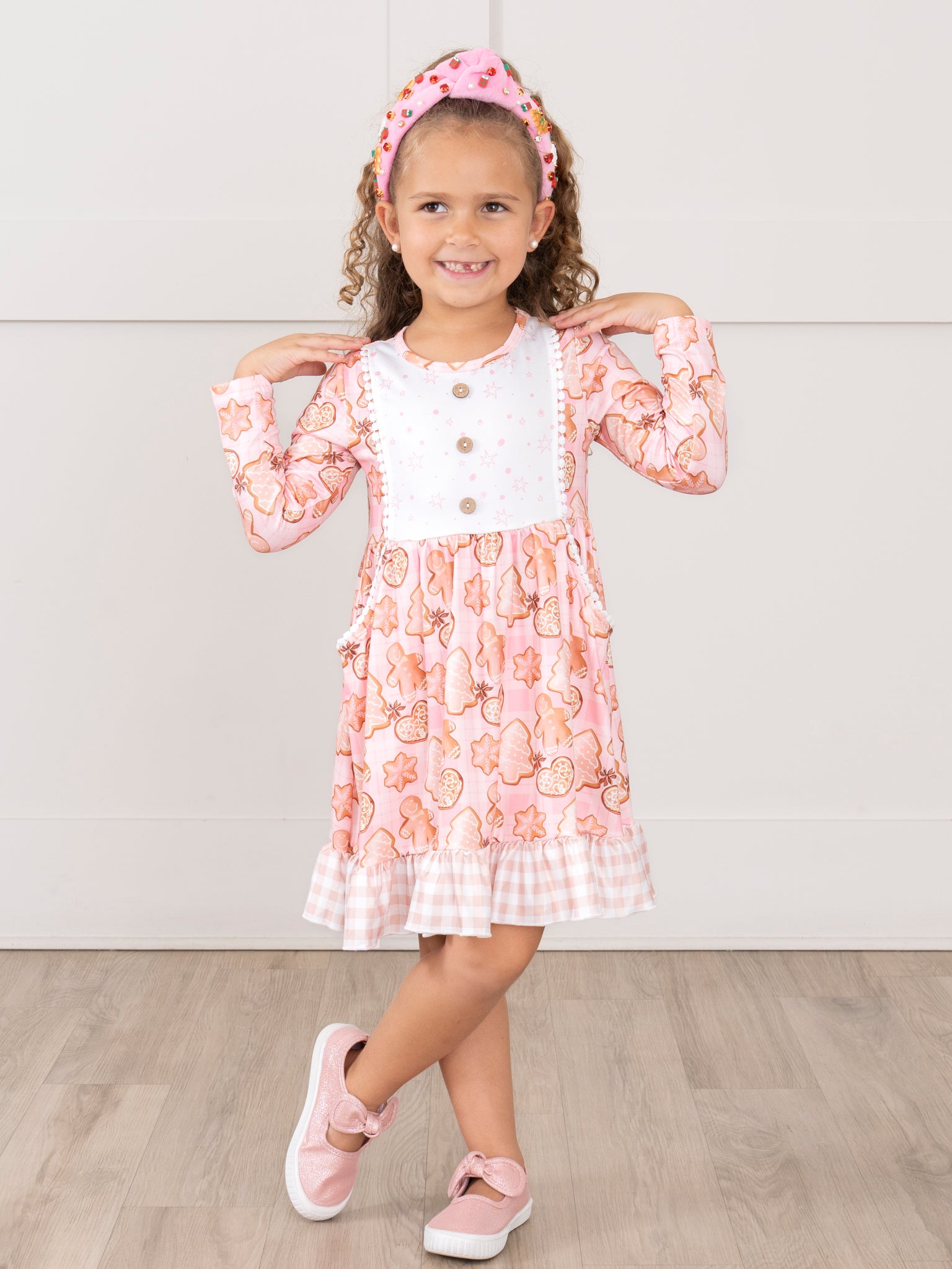 Get ready for a sweet holiday with this sister set! This dress boasts a playful gingham ruffle hem, your little girl will be the star of any Christmas party. And who can resist the adorable holiday sugar cookies print? It's the perfect dress for a fun and festive season!