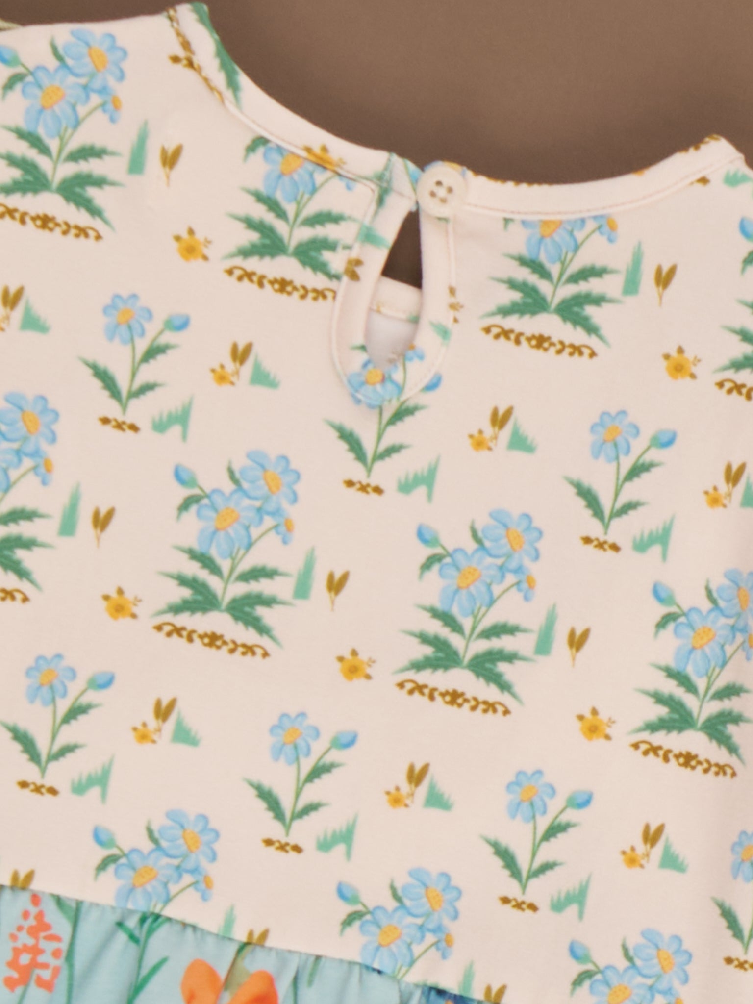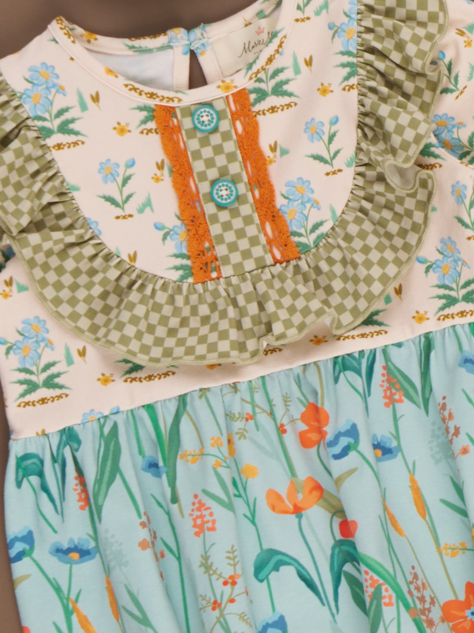 Frolic into spring with the flowering elegance of the Into the Meadows Collection. This exclusive set from Marie Nicole Clothing draws inspiration from stretches of sky and grassy, green meadows, blossoming with wildflowers. Showing off petals of all different colors, this collection is for the girls who love to be outside, picking flowers or sitting down for a picnic. Every piece is lovingly made with soft, high-quality cotton and crafted for comfort, durability, and breathability, perfect for days outside in the warming weather. Watch your little girl positively bloom in one of these beautiful pieces.