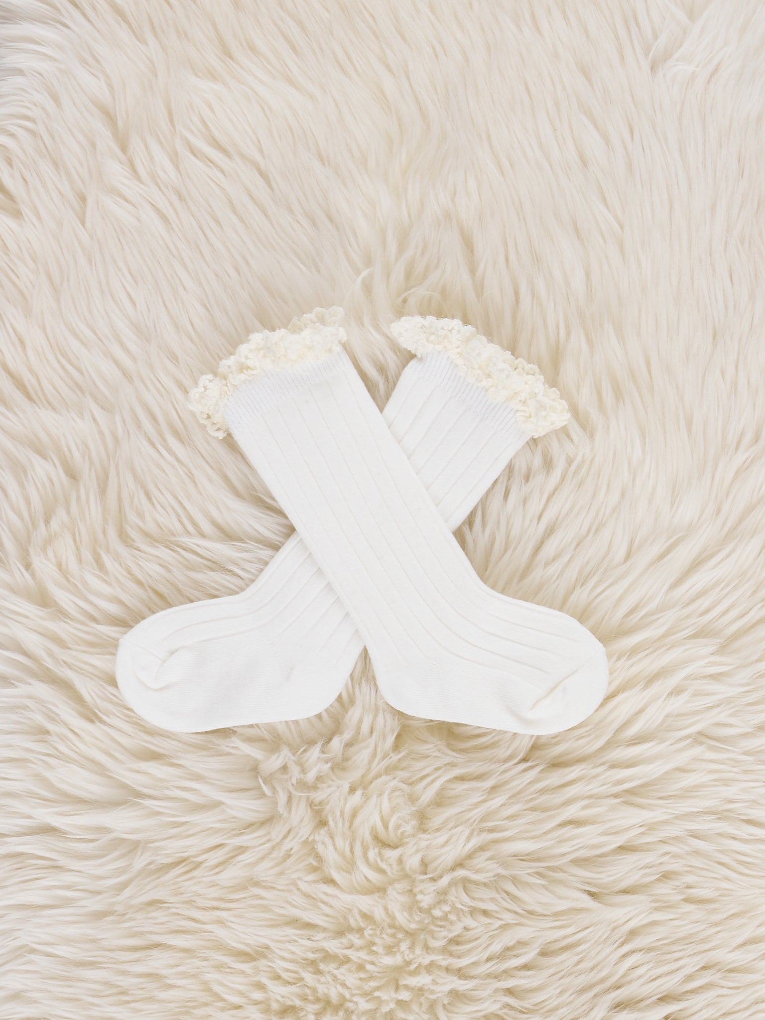 Lace Trim Knee Socks - White