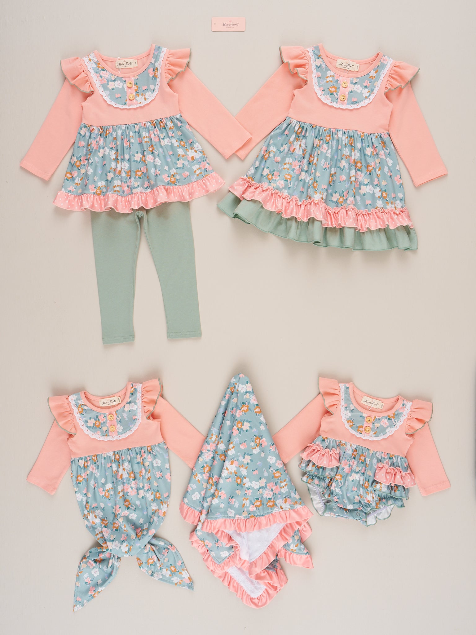 The Little Wildflower Ruffle Outfit is a darling one-piece full of charm and bloom. Featuring a sweet wildflower print and delicate ruffle accents, this outfit from Marie Nicole Clothing captures the beauty of nature in a playful, comfy silhouette. Lightweight and breathable, it’s perfect for sunny days, playdates, or any day your little one wants to shine like a wildflower.