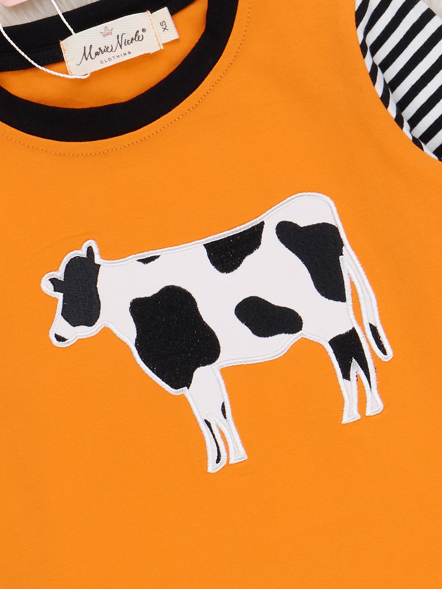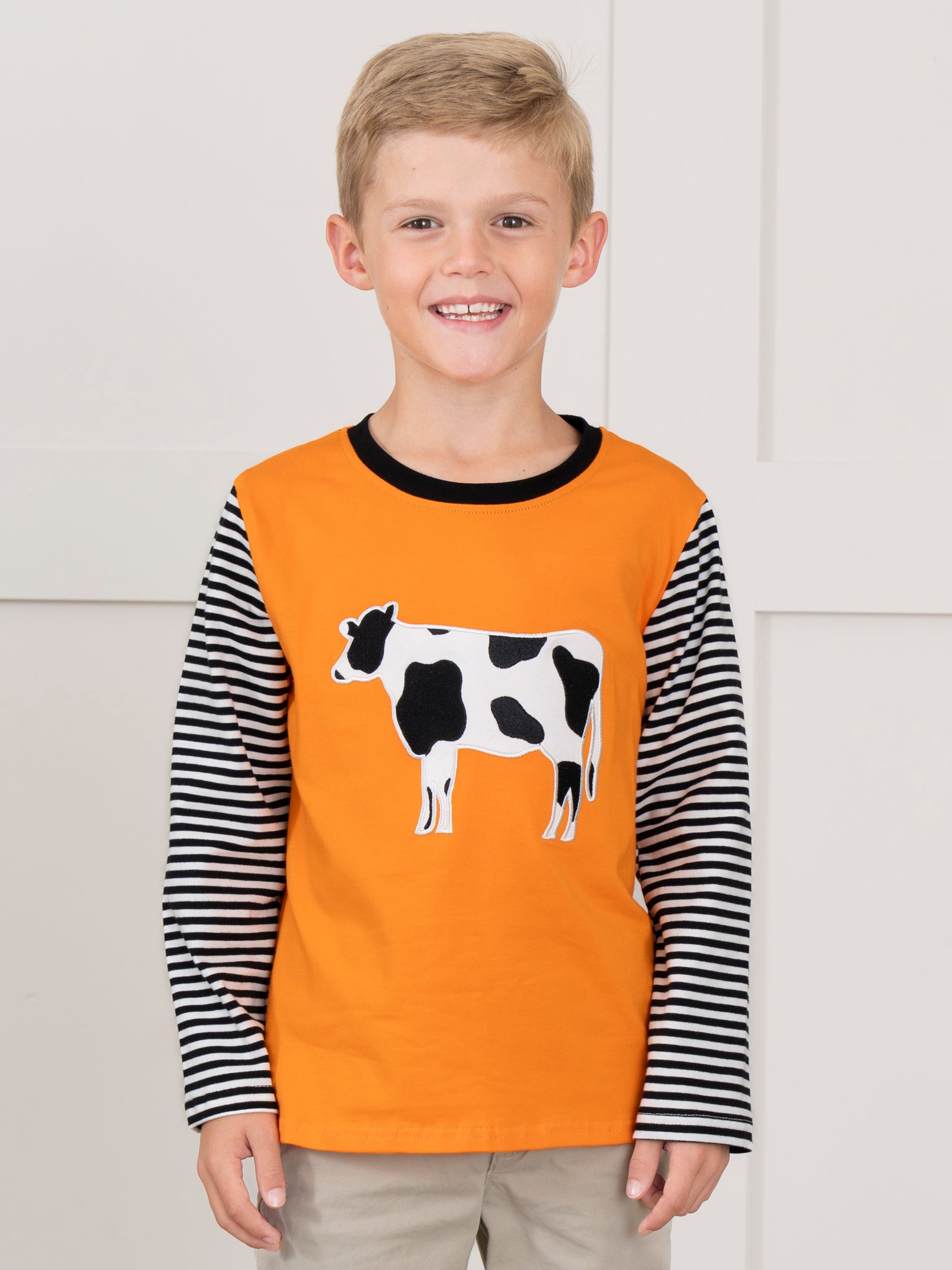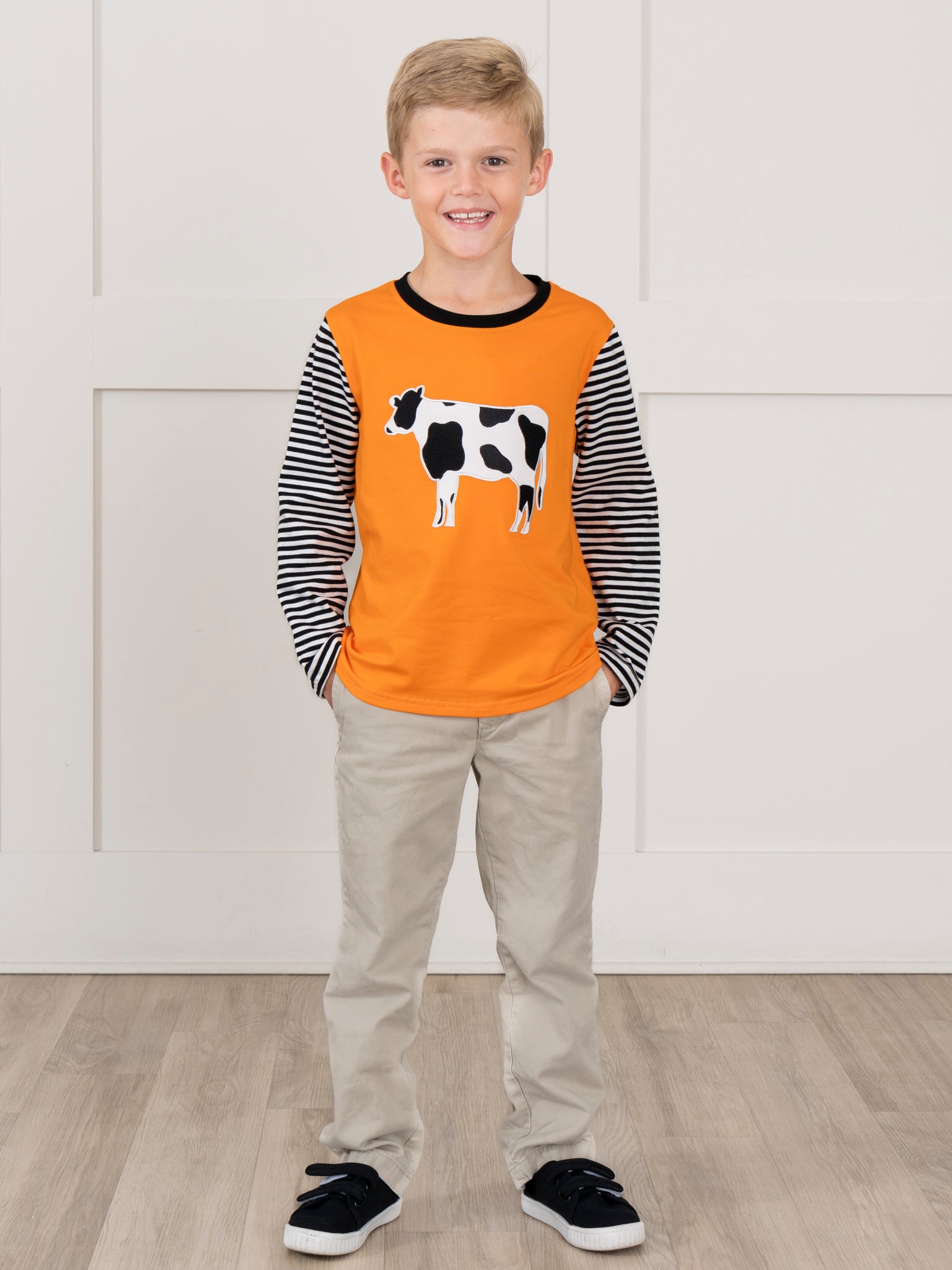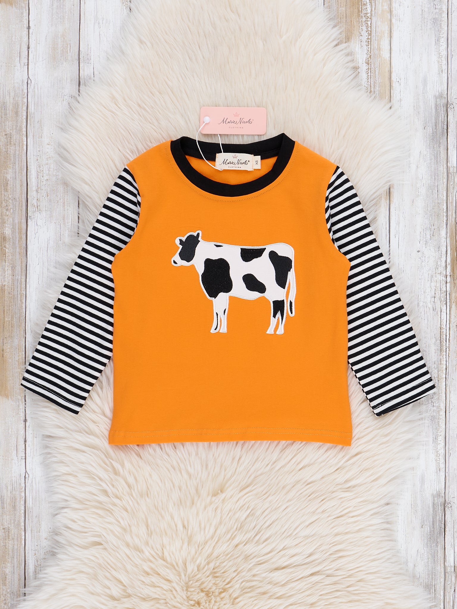 The Pasture Pal Embroidered Cow Top is an adorable and cozy outfit perfect for little farm enthusiasts. Featuring charming cow embroidery and made from soft, breathable fabric, this top from Marie Nicole Clothing combines comfort with playful style. Ideal for playtime, family outings, or any day he wants to show off his love for all things barnyard.