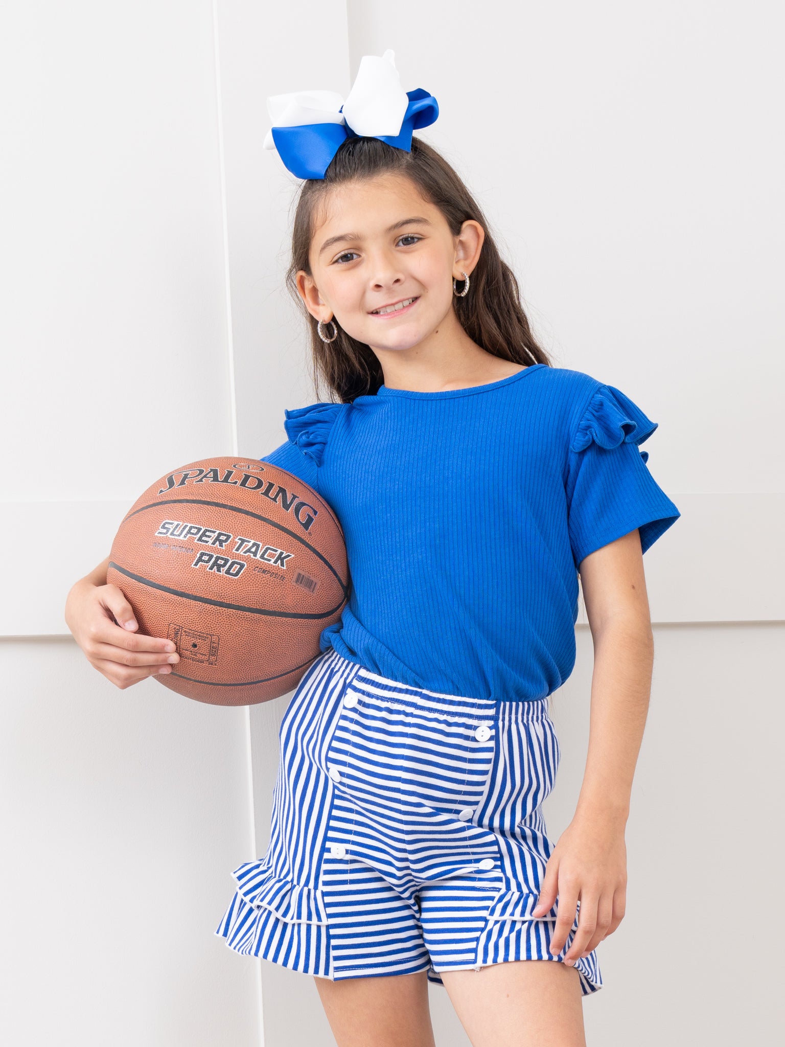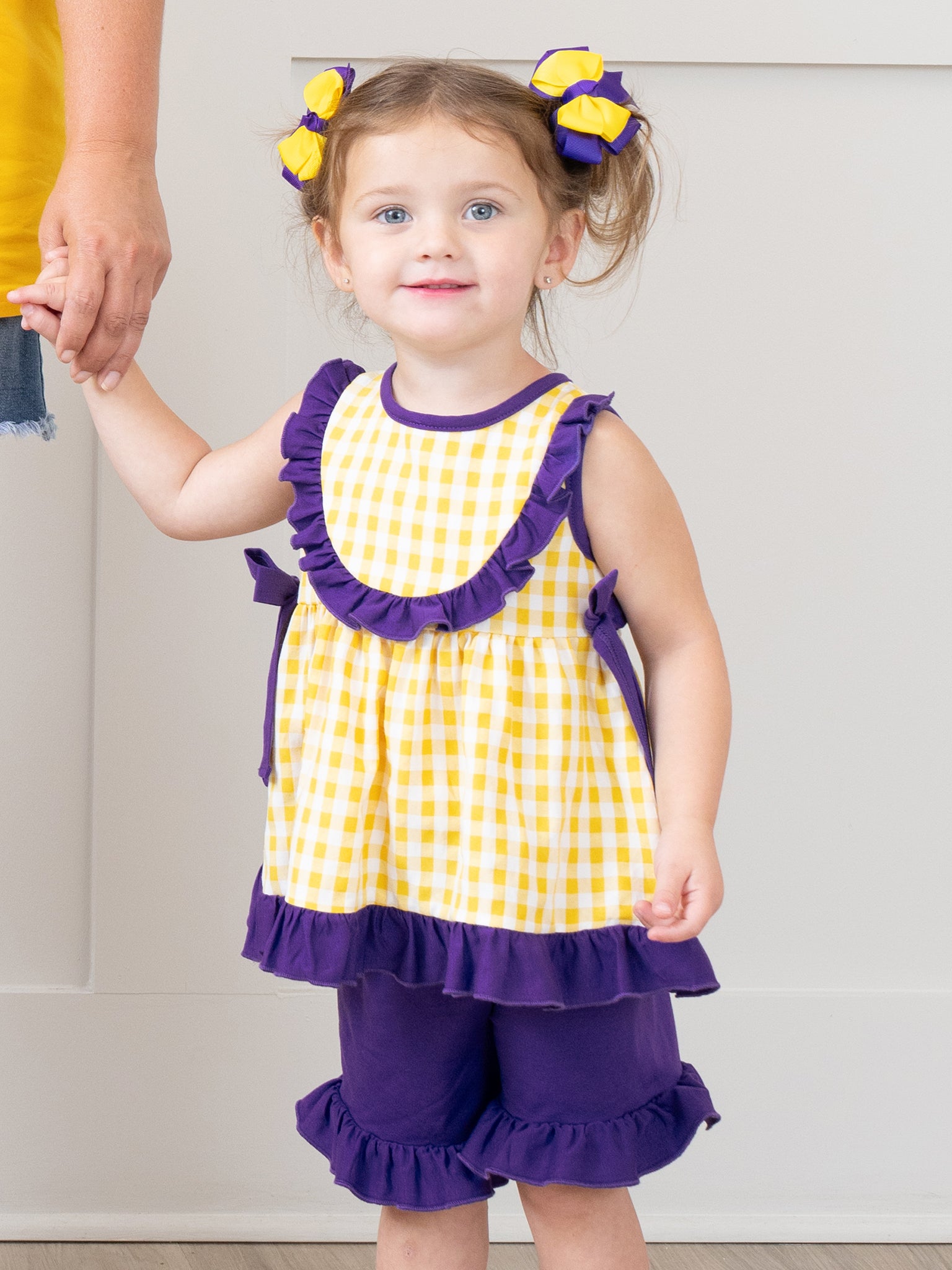 The Patriotic Bow Delight Embroidered Outfit by Marie Nicole Clothing adds a touch of festive charm to any occasion. Featuring an adorable bow-embroidered top paired with ruffled shorts, this set is perfect for celebrating in style. The soft, breathable fabric and sweet details make it ideal for family gatherings, parades, and all-day play during patriotic festivities.