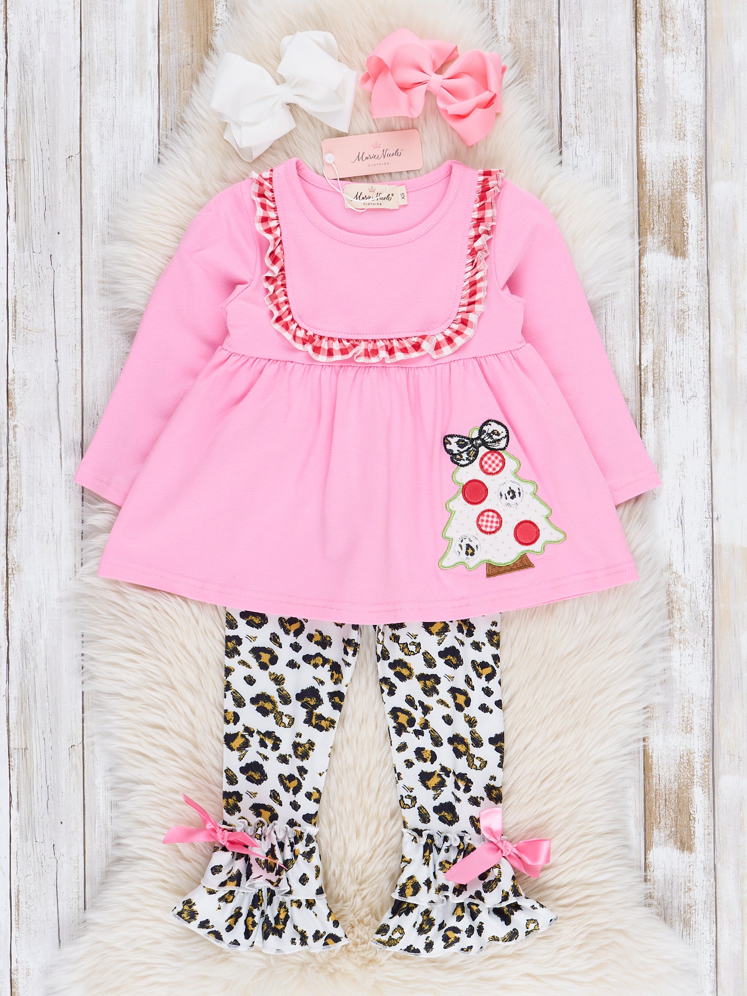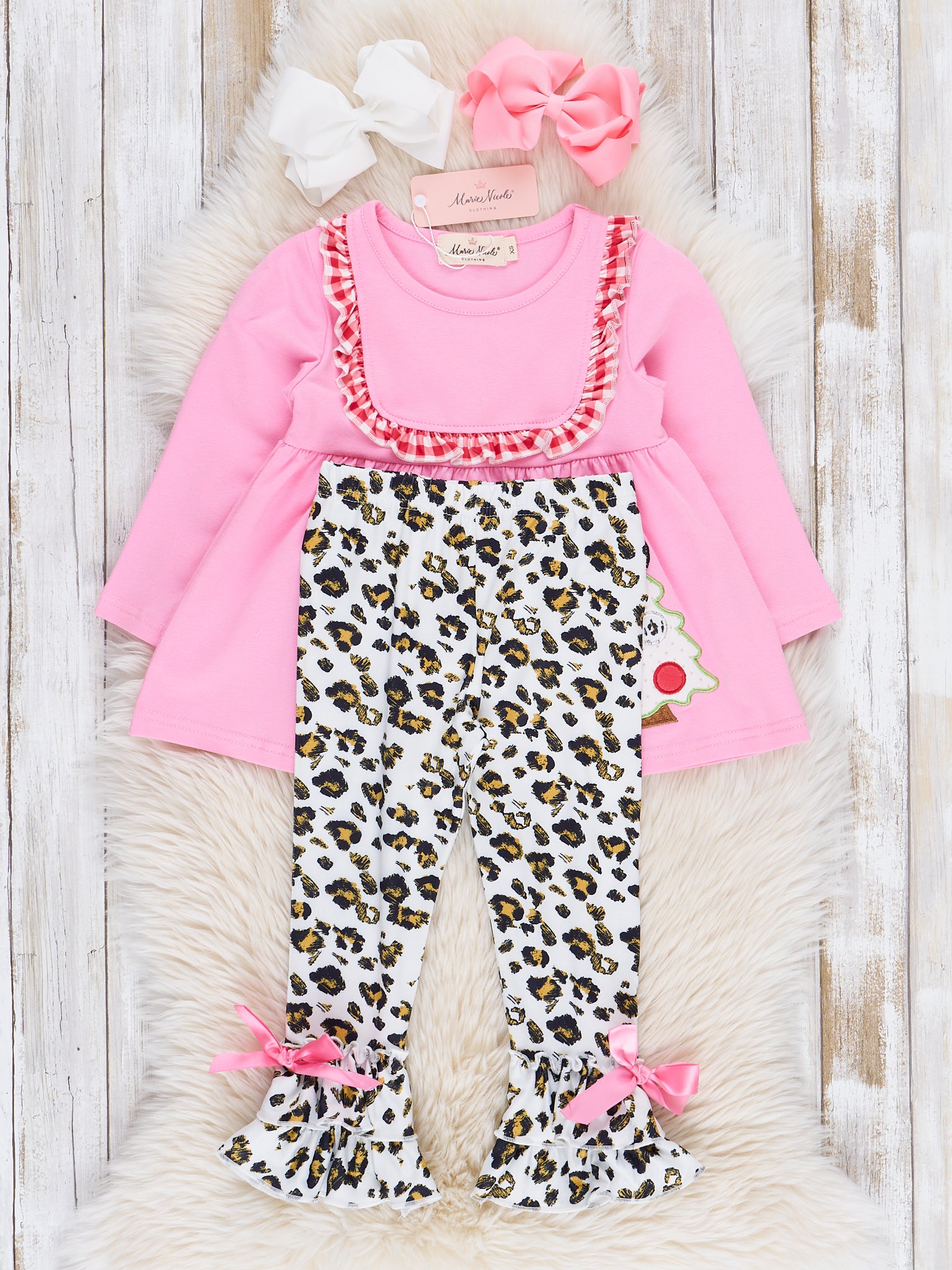 Pink & Leopard Christmas Tree Ruffle Outfit