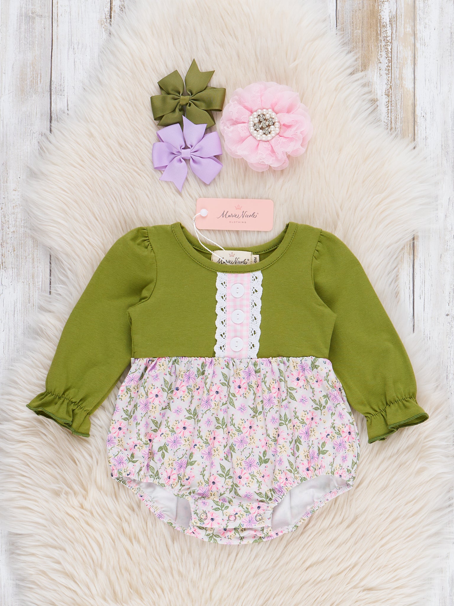 The Pretty in Petals Lace Bubble is a sweet and delicate piece perfect for sunny days and special moments. Featuring a soft floral print, elegant lace accents, and gentle ruffle details, this bubble from Marie Nicole Clothing blends timeless charm with everyday comfort. Made from breathable fabric and designed for easy movement, it’s ideal for playdates, parties, or simply blooming in style.