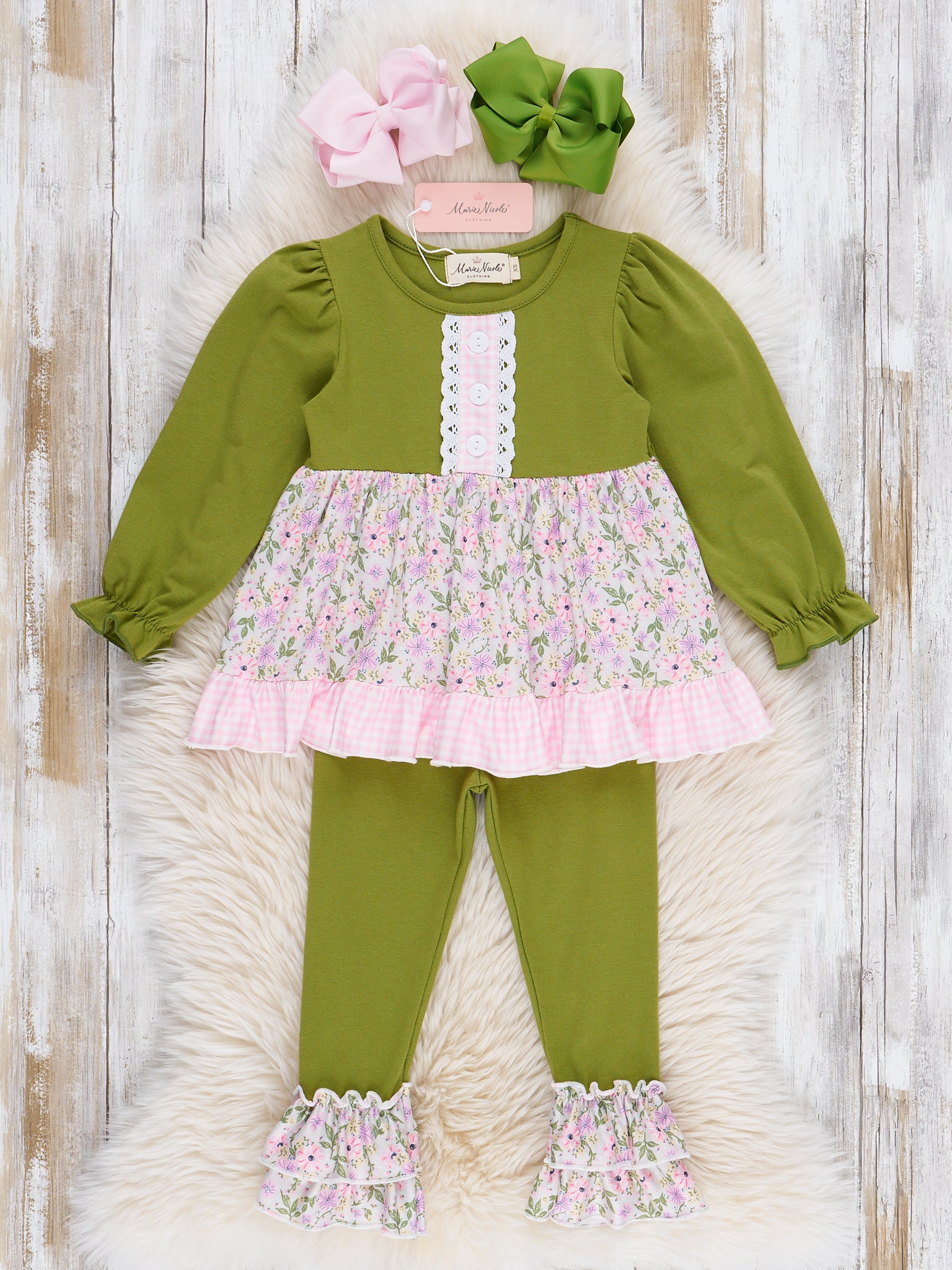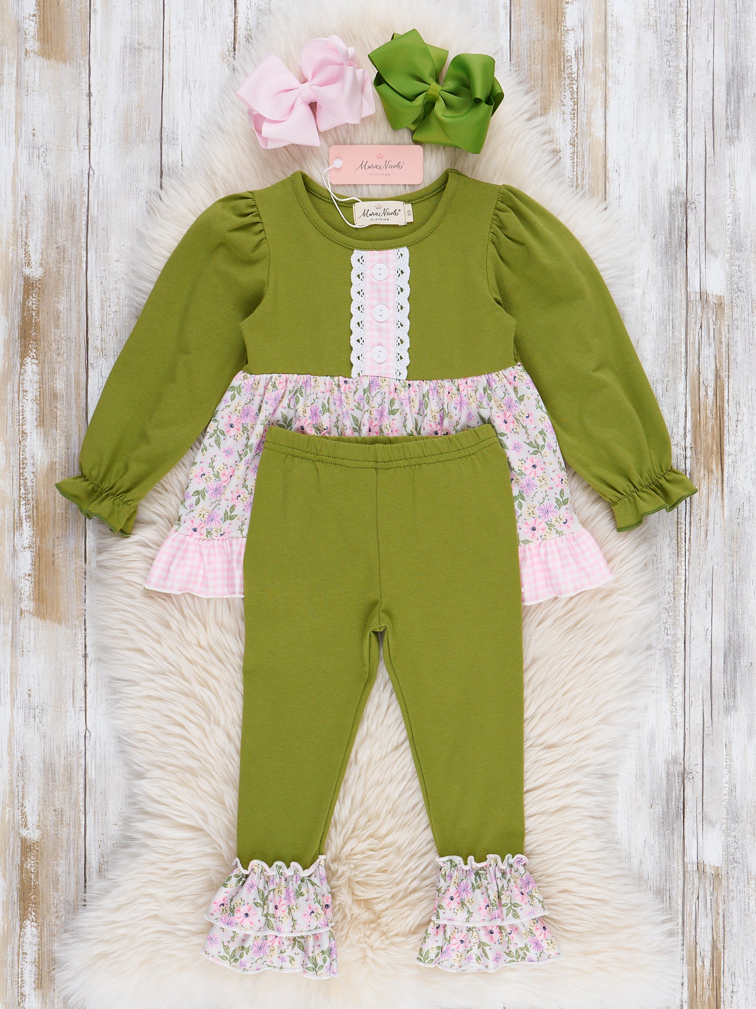 The Pretty in Petals Lace Outfit is a sweet and delicate piece perfect for sunny days and special moments. Featuring a soft floral print, elegant lace accents, and gentle ruffle details, this outfit from Marie Nicole Clothing blends timeless charm with everyday comfort. Made from breathable fabric and designed for easy movement, it’s ideal for playdates, parties, or simply blooming in style.