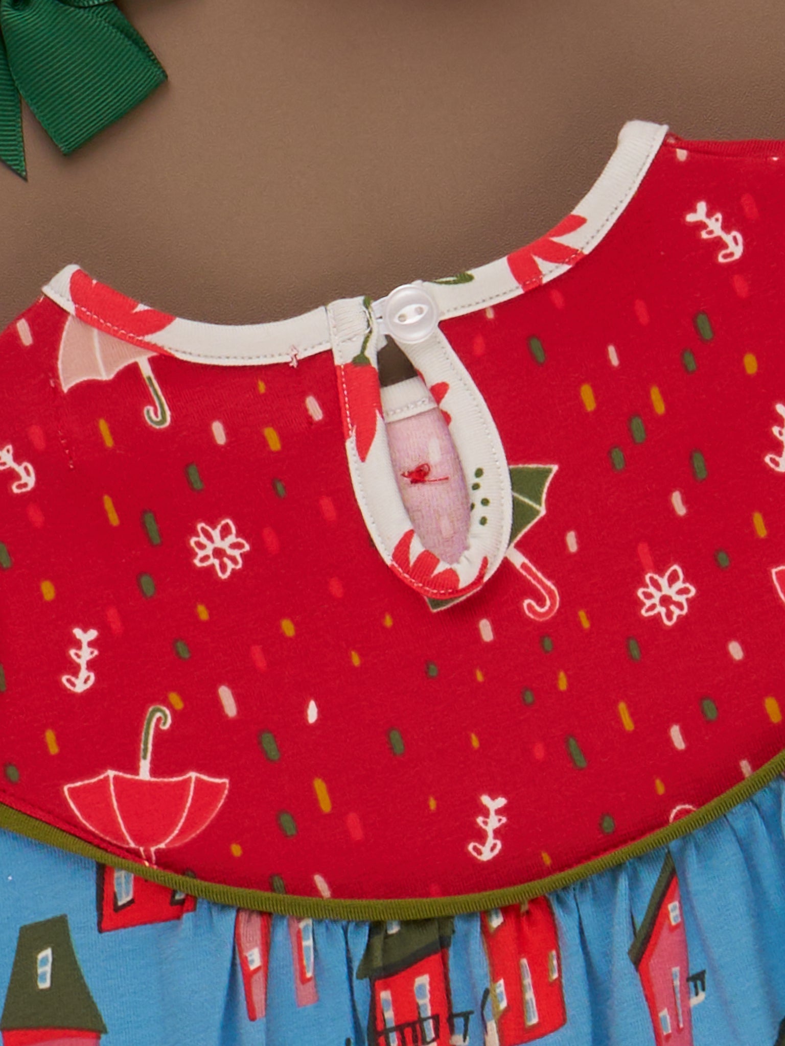 Your little dreamer will drift off in style with our Storybook Lane Ruffle Sleep Gown. Part of our MNC Exclusive Storybook Lane Collection, this sweet sleep essential features a charming village print, contrast flutter sleeves, and a playful yoke with hand-drawn umbrella and floral accents. The soft, breathable fabric and gathered hem make it perfect for cozy nights and lazy mornings alike. Whether it’s for bedtime snuggles or storytime magic, this gown brings comfort and whimsy to every moment.