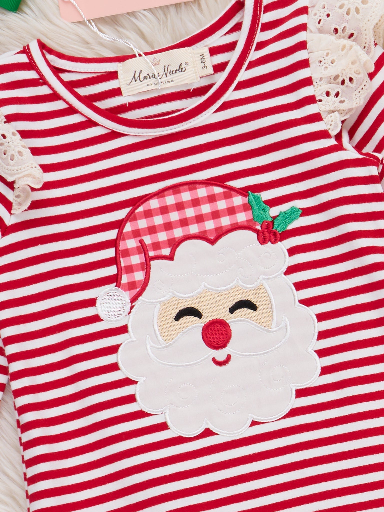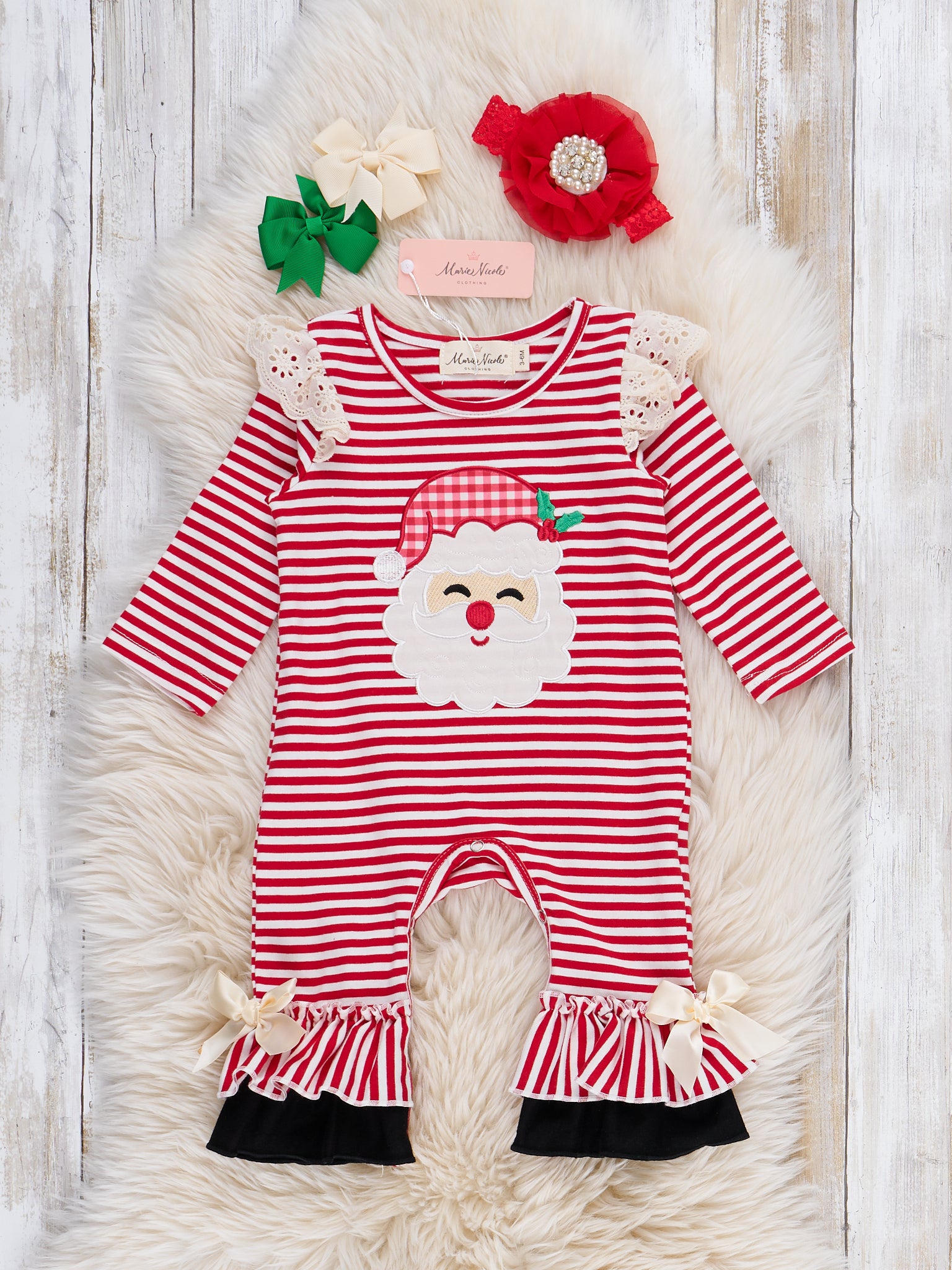 Stripe Santa Ensemble Embroidered Ruffle Romper