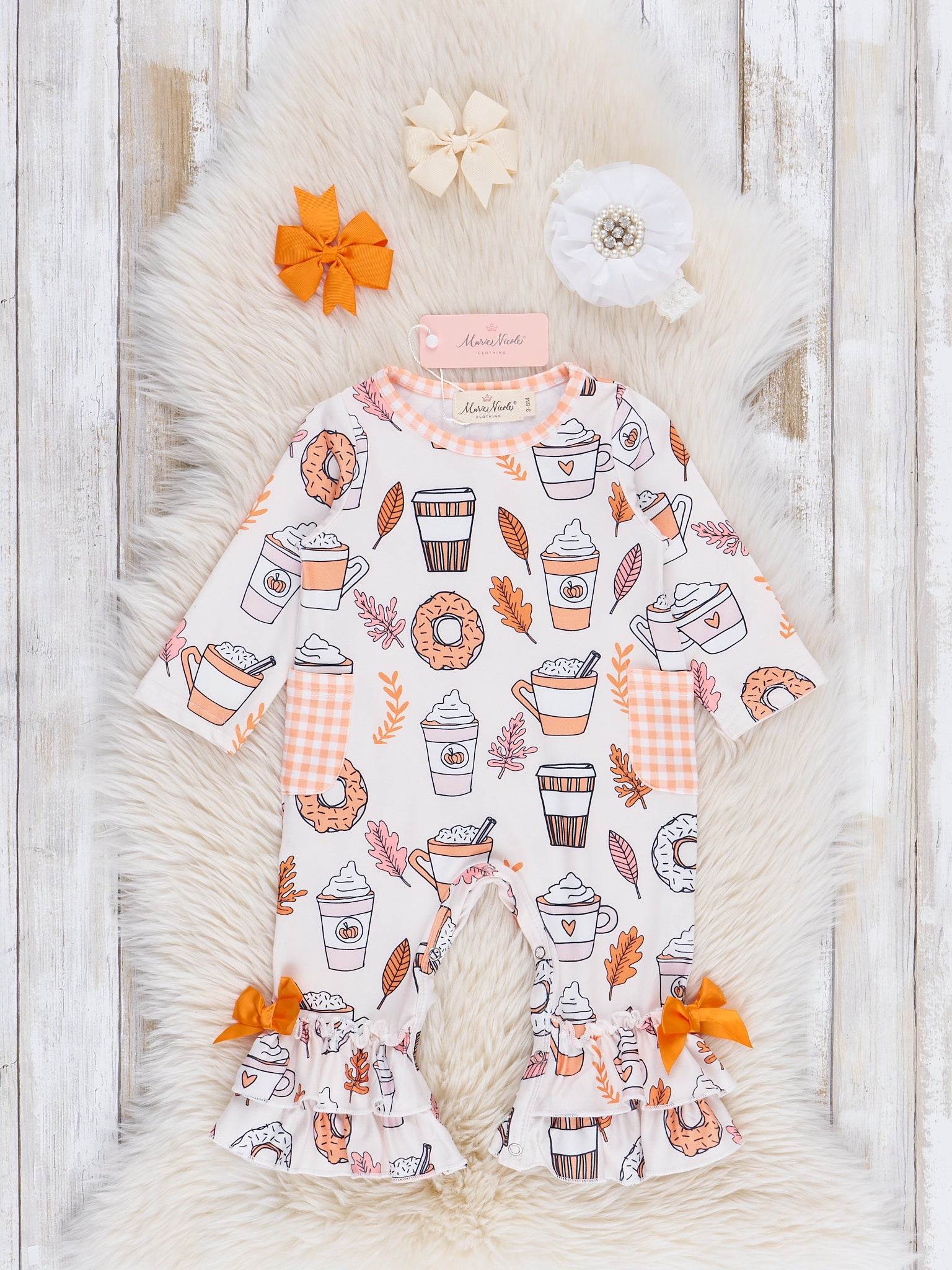 Autumn is in the air, and we're celebrating with this super sweet sister set! This romper features gingham detail at the neckline and pockets, plus ruffle & bow ankle detail.
